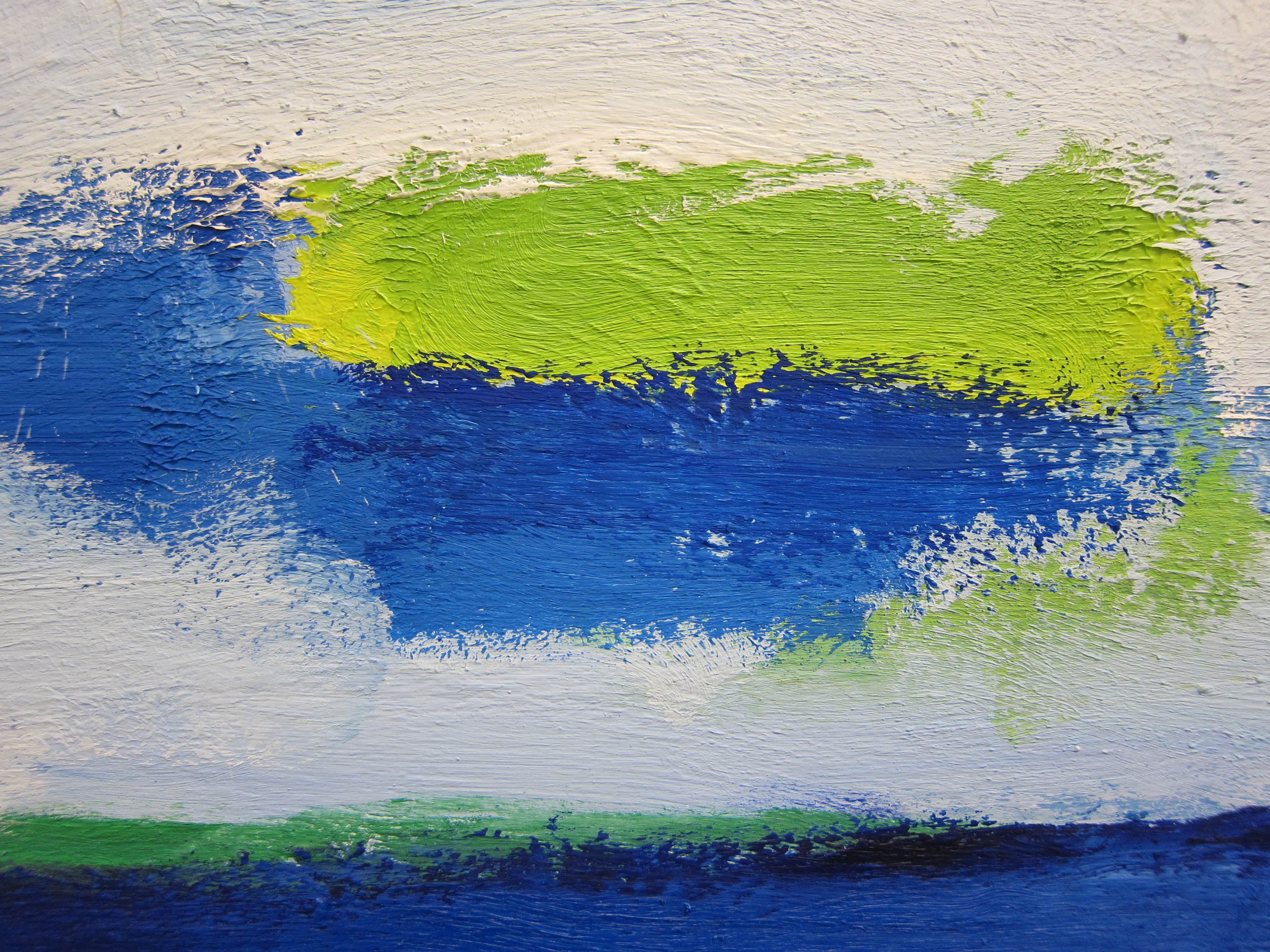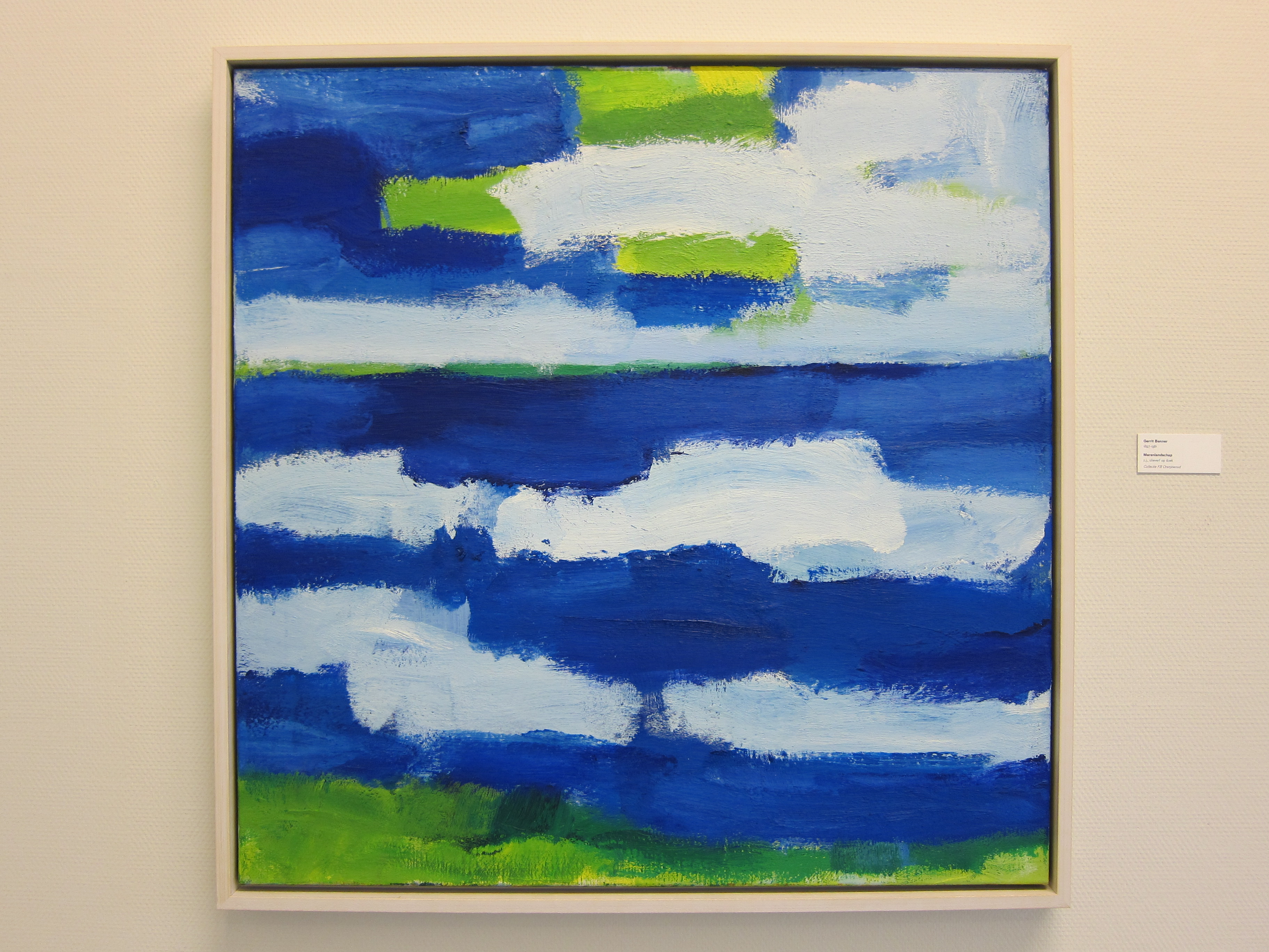 Gerrit Benner…. his native country is Friesland in the Netherlands. Benner has become famous for use of bold colors in an abstract setting but somehow he managed to combine these colors into landscapes . I had the chance to take some photographs from very close up and noticed, when seen on a distance of only a few inches, that it is pure abstraction. Further away you can see skies and meadows and the abstraction becomes a landscape. Benner is a master in combining these brushstrokes and blend them into a (little) recognizable subject.