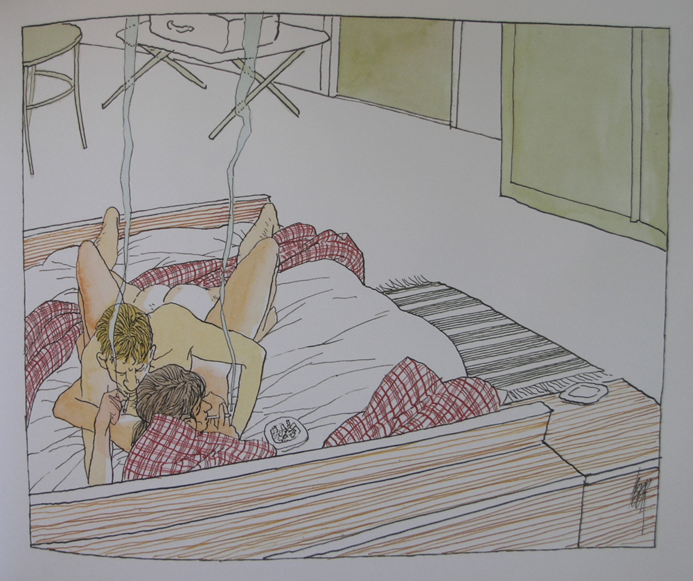 This is probably not for the dutch. There have been numerous articles on Peter van Straaten, who died 2 days ago. But for those who are not familiar with the works by van Straaten …. Here is a short blog on him. He is one of those who documented every day life, politics and even sex in drawings and with his drawings commented on the dutch society. Drawings with pen and black ink made his drawings stand out through over 5 decades. He published his drawings in newspapers ( Volkskrant), weekly magazines ( Vrij Nederland ) and his famous series of erotic drawings were published directly as a book . The last series is rarely encountered in the biographies of van Straaten, because of its explicit content, but look past the nudity and you will see a highly entertaining drawing of a situation in which one can feel the unease of it.