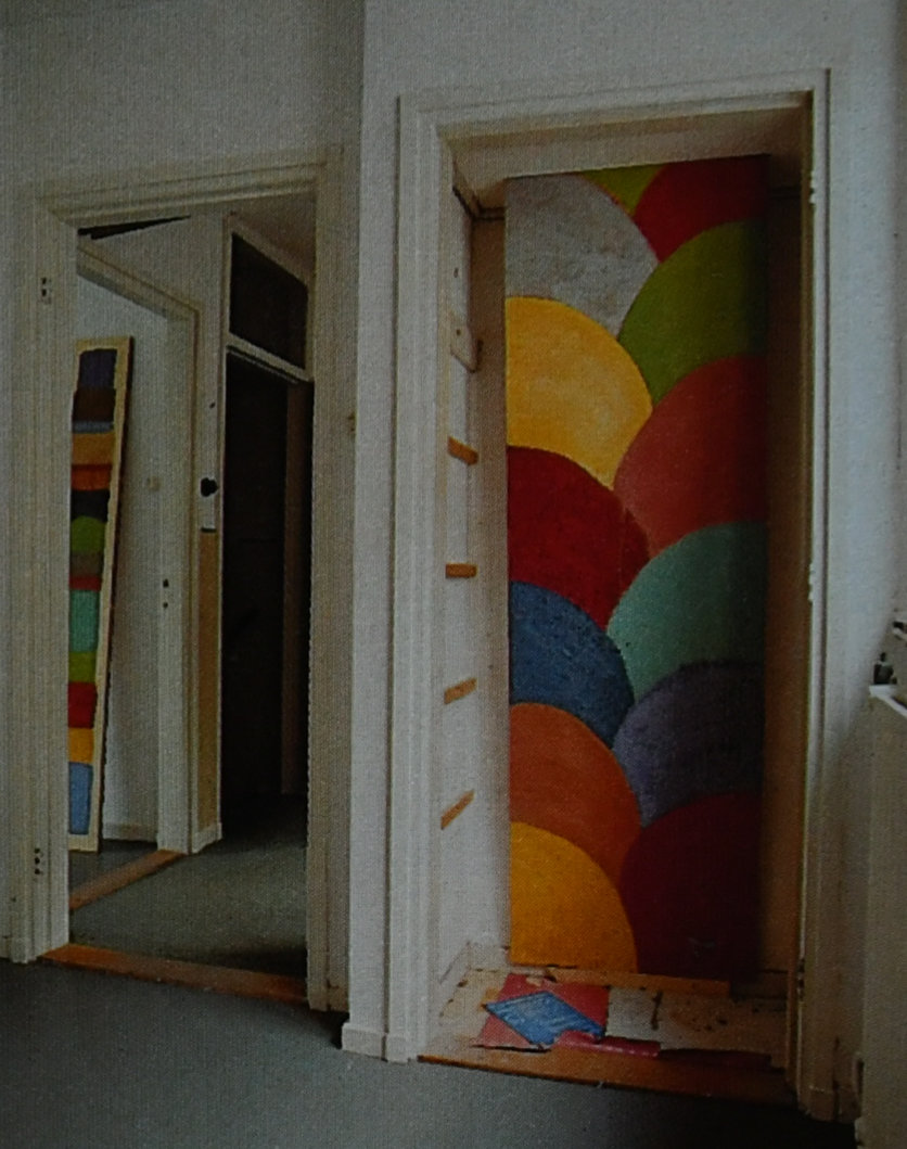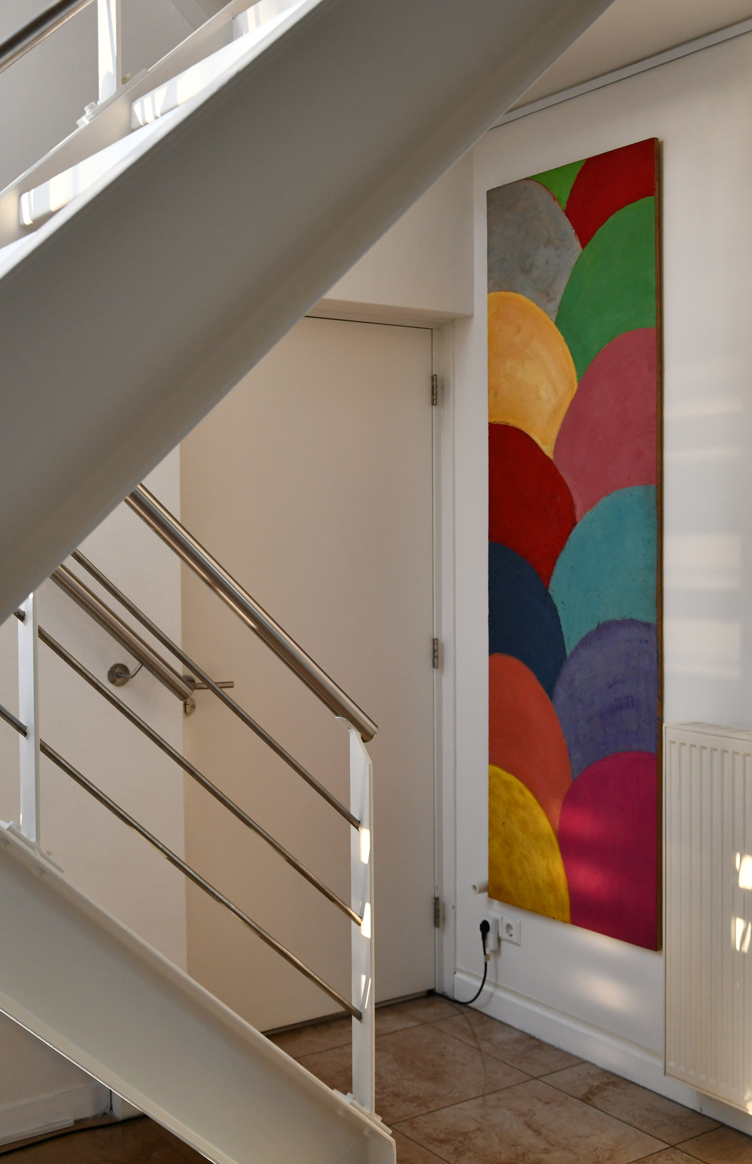 There is a work by Piet Dirkx that has been with me as long as i know it existed. I first have seen this long multi colored wax painting in Piet’s studio. Later i noticed the same work being a part of BIOTOOP and after our purchase it was one of our favorite works by Piet on our Sijzenlaan location and now, it is still “going strong” as our entrance work of art. The painting has been a part of our lives for nearly 30 years now. Long live ” MUSIQUE ORIGINALE ”