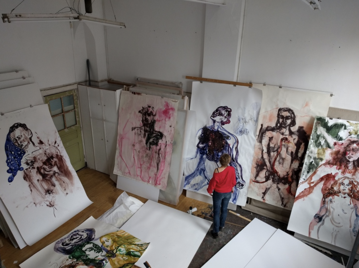 Her subjects in most of her paintings is the female figure and the powers that drive the women in the paintings/watercolors. These woman are unpolished, beautiful and at the same time vulnarable, but also in practically all works they look extremely strong.