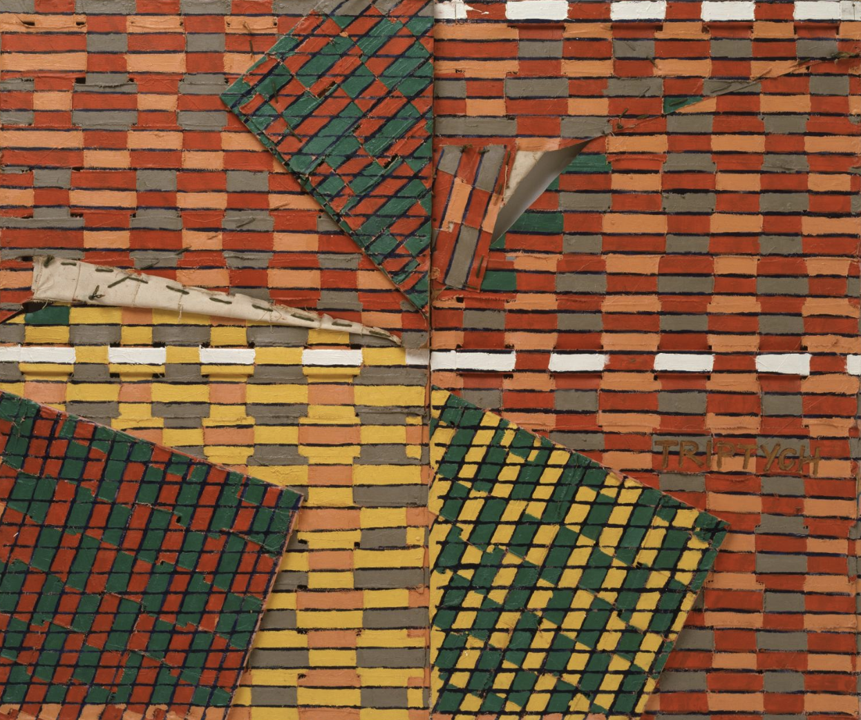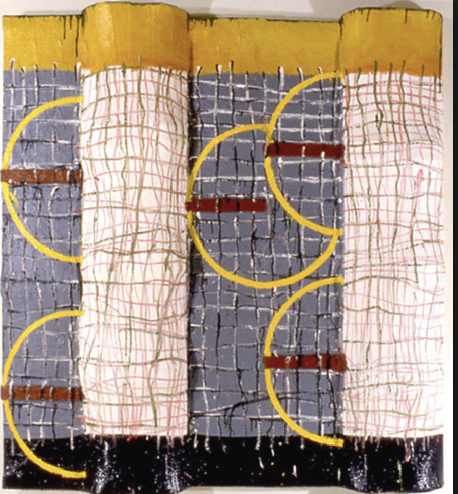 I do not know this for certain, but because i could not find many pictures of Stephen Buckley, my guess is he is an introvert perhaps even a shy person and this picture of his character would fit the art that he makes. Large in size and very abstract, but filled with figures that are not very common and certainly not constructivist. There seems to be a mouvement in his paintings, realized by dividing the space , bending the canvas or shifting pannels from each other. This way of setting up the composition and expressing himself makes his paintings very authentic.