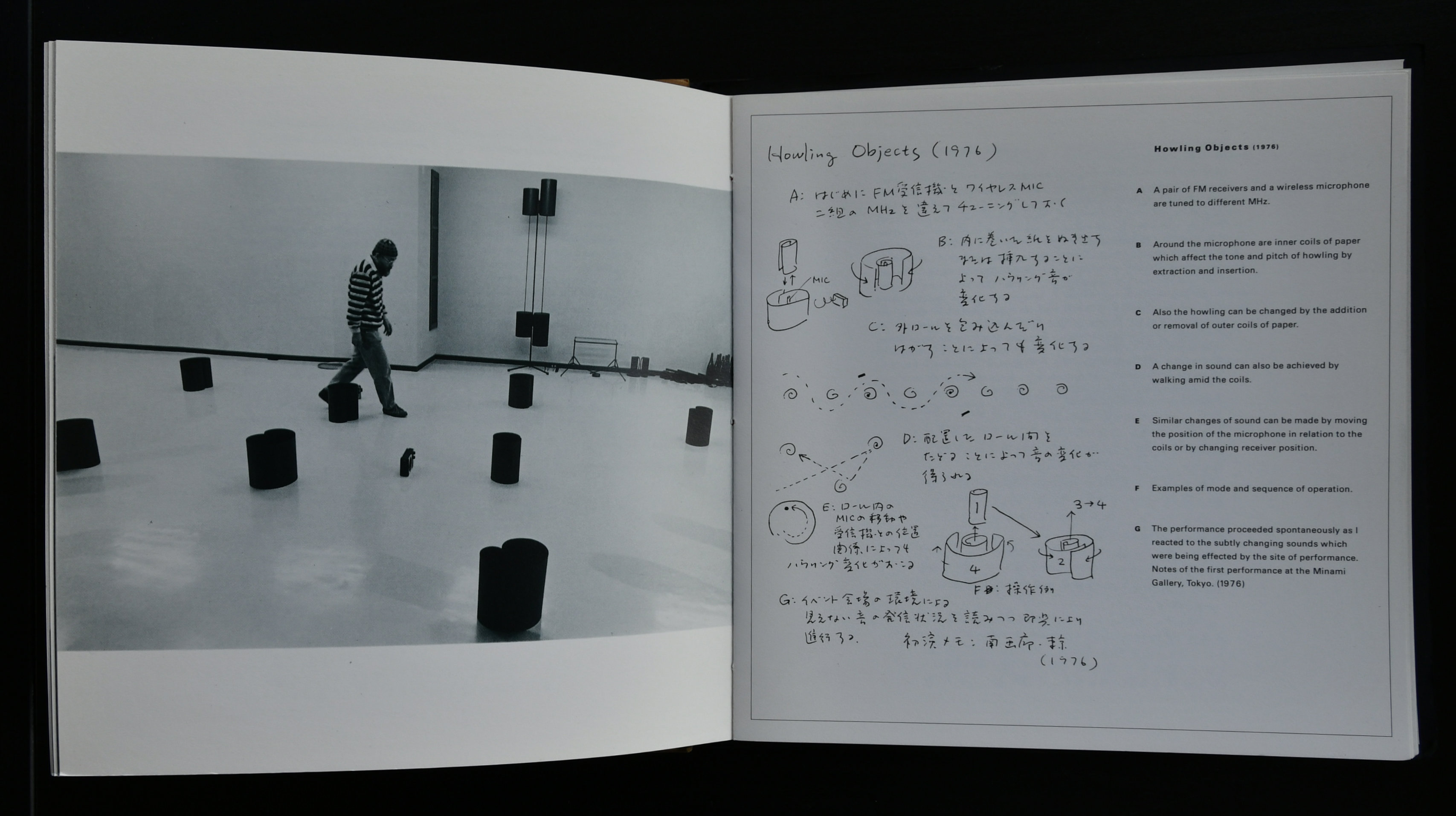 Through performance, Suzuki’s explorations concentrate on the acoustic properties of sound making. It is as if he is bringing nature into the hall—the simple resonance of two stones; percussion that sounds like a rainstorm; echoes like those heard on a valley floor. Suzuki, even at seventy years old, brings attention back to his interests as a child. In conversation he talks about his enjoyment of landscape, from watching from the window of his hilltop birth home in Pyongyang, North Korea to his afternoons spent in his house at Lake Biwa in Japan. “After it finished raining, the water flowed through the garden and I was always watching,” he recalls, “hearing and watching.”