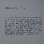 Recently i acquired for my inventory one of the most important of all Calderara portfolio’s published just a few years before his death. It is the Tempo Spazio Luce portfolio published by the recently closed Galerie Nouvelles Images in 1975. The edition size, only 40 copies. 18 serigraphs….all signed with initials and numbered. Condition mint. I consider this period as Calderara’s best. The prints are as delicate as most of his prints from this period and these are not the small prints that are offered elsewhere but the large printed sheets that are 50 x 50 cm.
