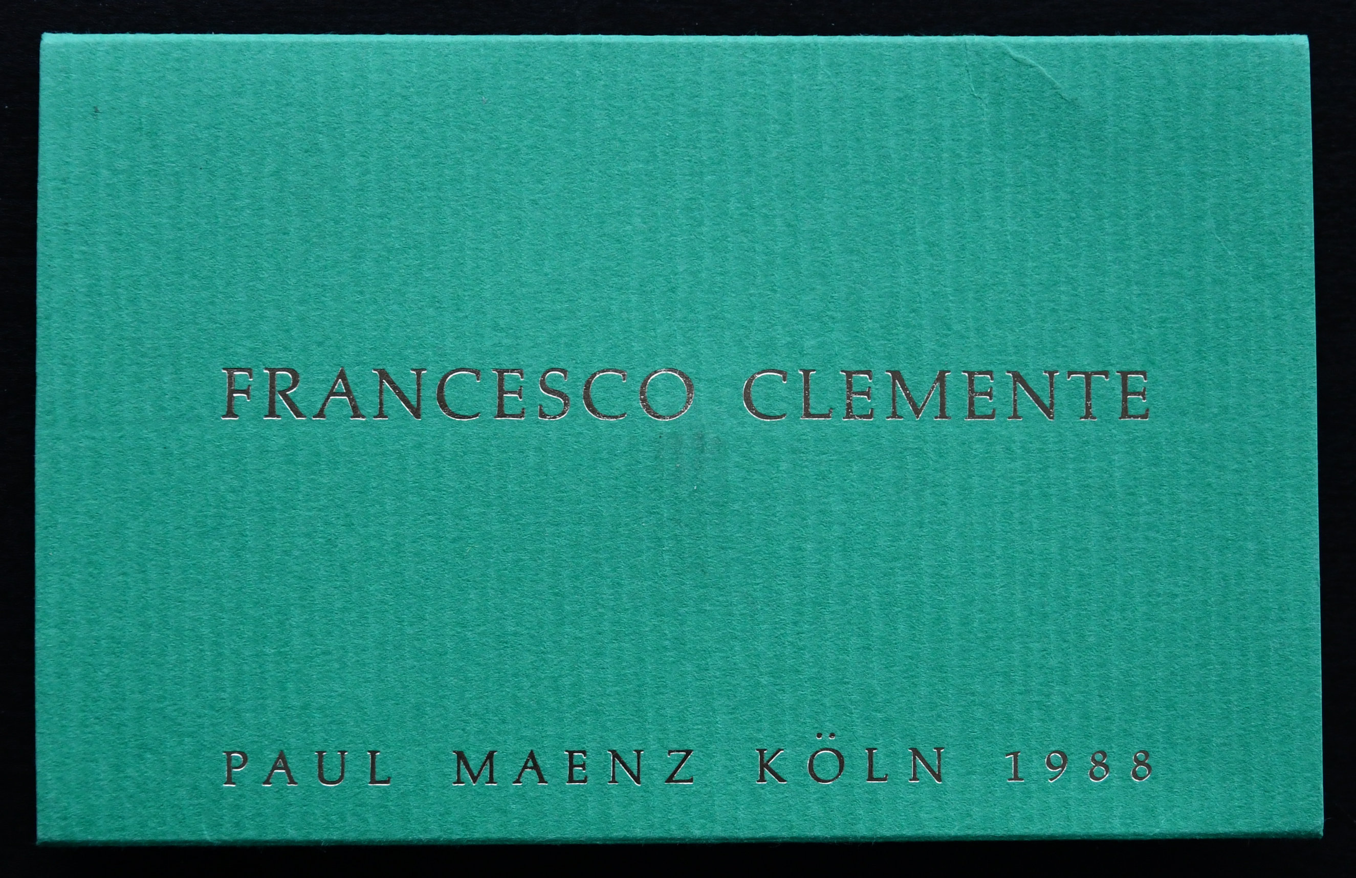 An important exhibition  and the specially designed collectible should be an example for other gallery publishers. It is not too expensive to produce, but its appearance is like no other publication. It looks and feels special from the moment you set eyes on it and when you “unbutton” it it shows its contents….3 fold out cards CROWN…SKY…WAR. estimated costs…less than 1 euro. But this special is worth much much more since it’s importance means that the Paul Maenz gallery is mentioned in all the years after its publication. Whenever a copy surfaces , one is reminded of the Clemente exhibitions at their gallery in 1988.