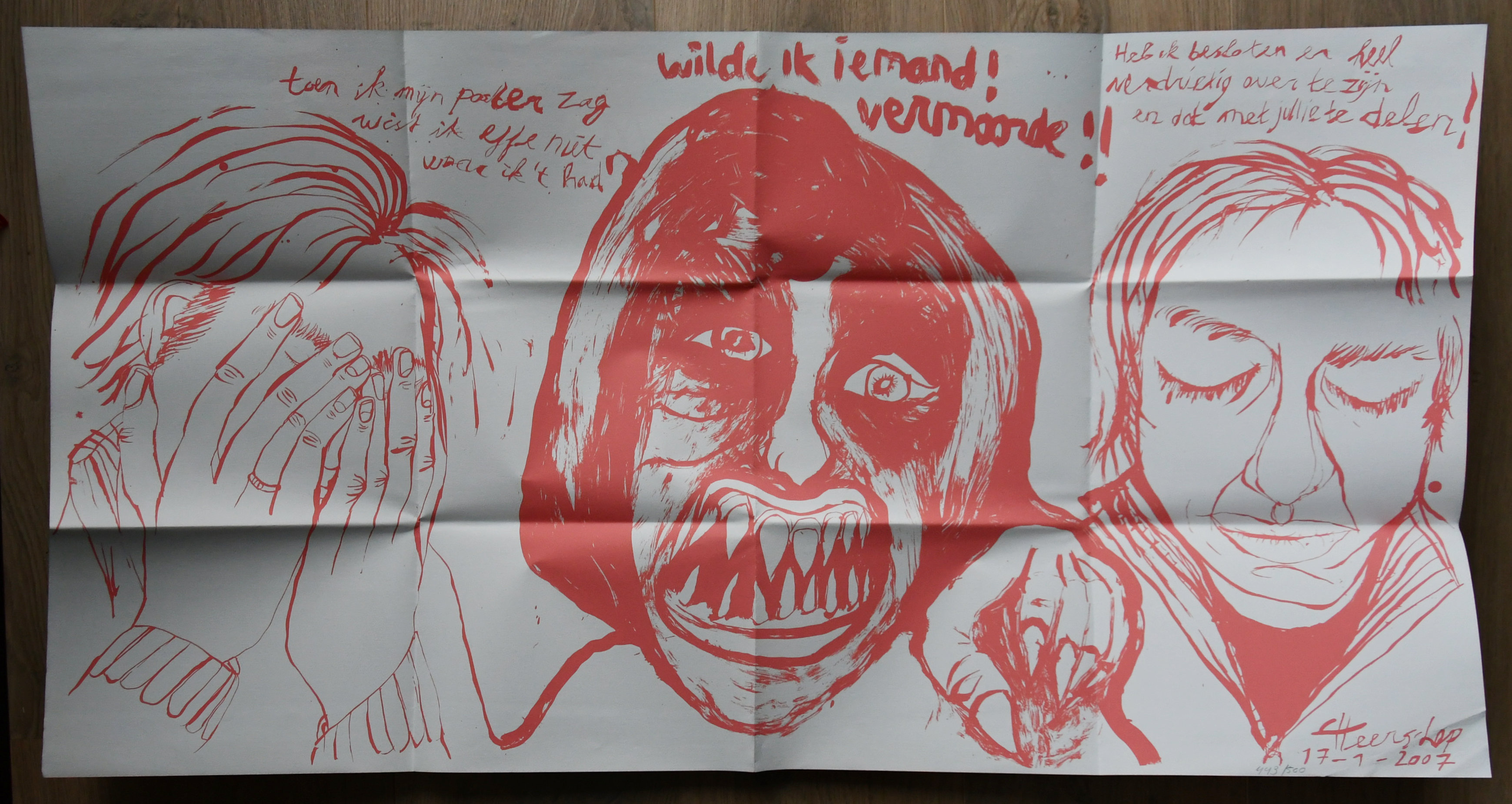 For his drawings, Tom uses many different formats. He always works on paper and with a diversity of drawing materials: pen, pencil, paint, ink, marker. The stream of work that pours from his hands marks the intensity with which Tom experiences and perceives life. With head, hands and heart.