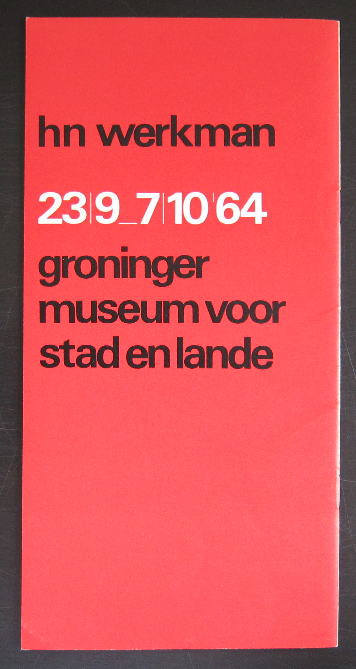 This publication was published on the occasion of the Werkman exhibition in Groningen in 1964 and one of the first designs that Wim Crouwel made for a dutch museum. In this same period he designed the publications for the van Abbemuseum which were followed from the early sixties on by the publications of the Stedelijk Museum. What makes this one special is the condition it is in and the highly unusual appearance. The use of multi colored papers, its odd size and a cover chosen in relation with the Werkman print which is used as a cover. This publication is the top in dutch lay-out and design and must be considered as one of the very best publications of the sixties. Curious?………take a look at