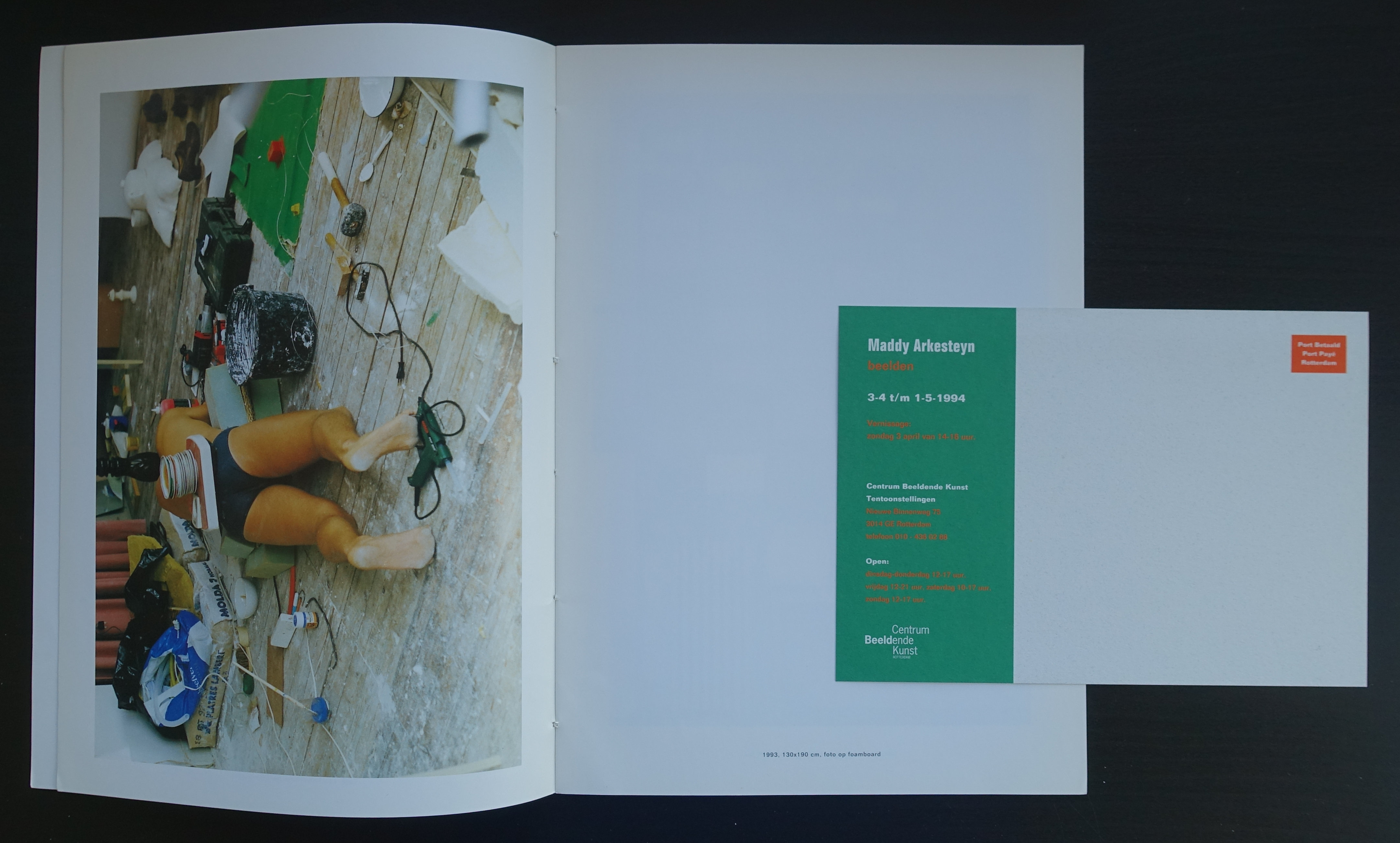 A promising career was ended much too soon because of a deadly disease which ended her life in 2012. But Maddy Arkesteyn has left us some impressive works in public collections and an excellent catalogue which was published by Centrum Beeldendende Kunst in 1994. This catalogue shows that Arkesteyn needed space for her works. These are not intimate little paintings but large installations in which she uses all materials that are nearby or at hand. Educated in Maastricht at the Academie Voor Beeldende Kunst and finishing her educations at the Ateliers ’63 in 1989-1991.