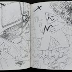 It is a rare find to have found this 2 months ago. This is a book which was published during the best years of the “Figuration Libre”. This special artist book was published in an edition of only 1000 copies . I doubt that it was an authorized edition which was published by Fernando Pellegrino and Saverio Perozzi, but there is no doubt about the artistic quality that oozes from the pages. Quick sketching and written text in print, making a complete story on 92 pages.