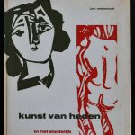Willem Sandberg has designed many publication for the Stedelijk Museum. Starting as early as 1939 until in the early 60’s he finished designing publications for the Stedelijk and Wim Crouwel took over this task. In those 25 years he rarely made a large sized publication. This book is the exception. In collaboration with Meulenhoff publishers the Stedelijk Museum published its highlights and asked Sandberg to be the designer. A Large sized book of 12.1 x 10.6 inches containing over 200 pages, linnen bound with dustcover. Sandberg took the typical elements ( use of multiple sorts of paper) of his Stedelijk designs and incorporated these in his own way into this much larger publication. The extra size makes the art even more impressive.