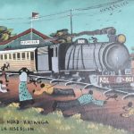 Among the scenes depicted by TKM was the Elisabethville Massacre of 1941, Patrice Lumumba’s independence speech of 30 June 1960, the introduction of culture obligatoire farming, and the trial of the religious leader Simon Kimbangu by the Belgian colonial authorities in 1921. All the paintings were made at the time of the Shaba Invasions during which TKM’s native province of Shaba witnessed widespread political instability.
