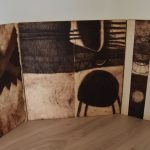 Two folding panels covered on both sides with etchings and in the middle another 2 etchings. In total 6 etchings and another discovery….it was signed, numbered and dated. very hard to discover the signature, but it was there , together with the other edition information ( see the photograph with the item).