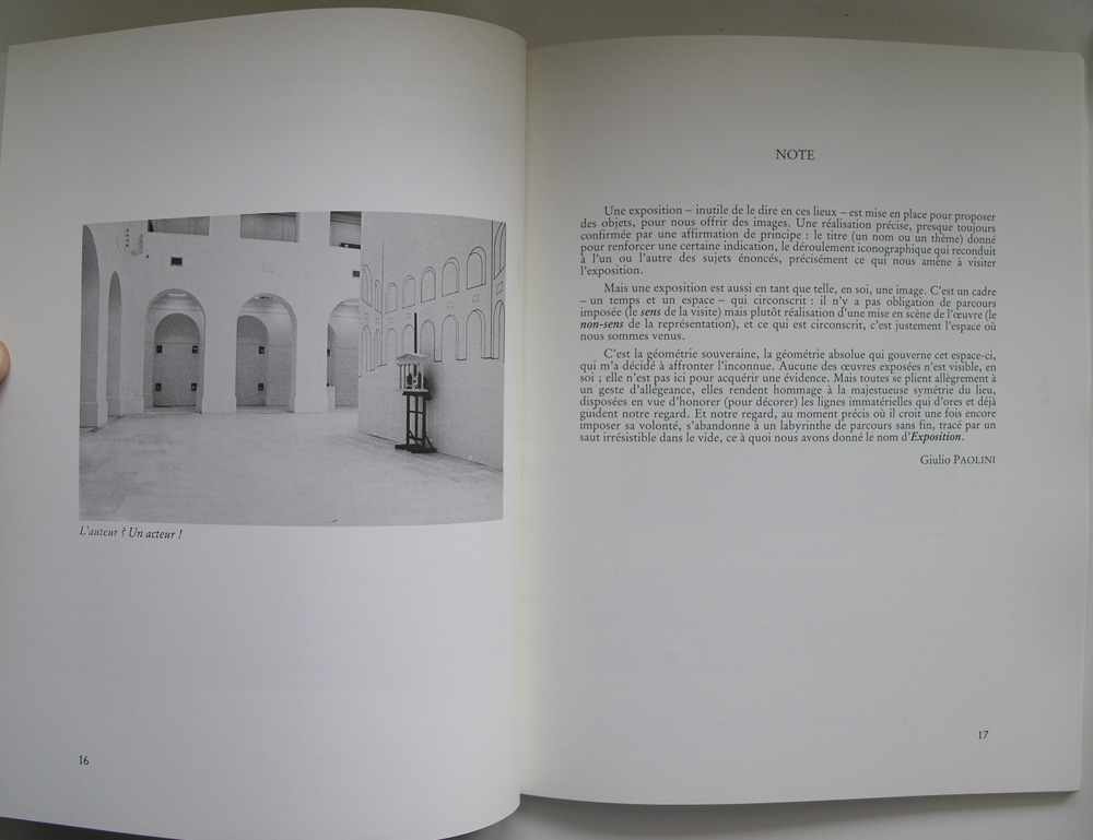 The catalogue i write about is the Giulio Paolini catalogue made for the Musee des Beaux Arts Nantes from 1987. This is not such a well know catalogue but because of its provenance i chose this one. Paolini is a well known “Arte Povera”artist and this fame has brought him all over the world with his art. One of his admirers is Rudi Fuchs who organized exhibitions with Paolini in the van Abbemuseum and the Stedelijk Museum and because of this, he always received complimentary copies whenever there was another exhibition with Paolini. One of these catalogues i have for sale is signed by Rudi Fuchs, meaning that this must have belonged to his personal library. It is a rather obscure publication, but very nicely published with an impressive cover with the name of Giulio Paolini underneath an arch. Exhibition was organized by Henry-Claude Cousseau, but the importance of this catalogue and proof of its quality is that is was within the library of Rudi Fuchs. Signature in blue ink on the first inner page.