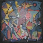 Almost violent in his approach of his canvas. Bright colors, large mouvements, complex compositions in the true Lyrical abstract tradition. studied at AKI under Roger Raveel, who valued his works as important and promising.
