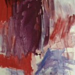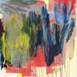 Two names spring to mind when you look at the works by Jean Paul Riopelle ( Canada , 1923) and read about his life. He lived near Giverny ( the place where Monet had his studio and gardens) and he used a technique much the same as Jackson Pollock did. Dripping paint on a horizontal canvas. The result ….. colorful and abstract compositions which have the colors of a Monet painting and the abstract construction of a Pollock one.