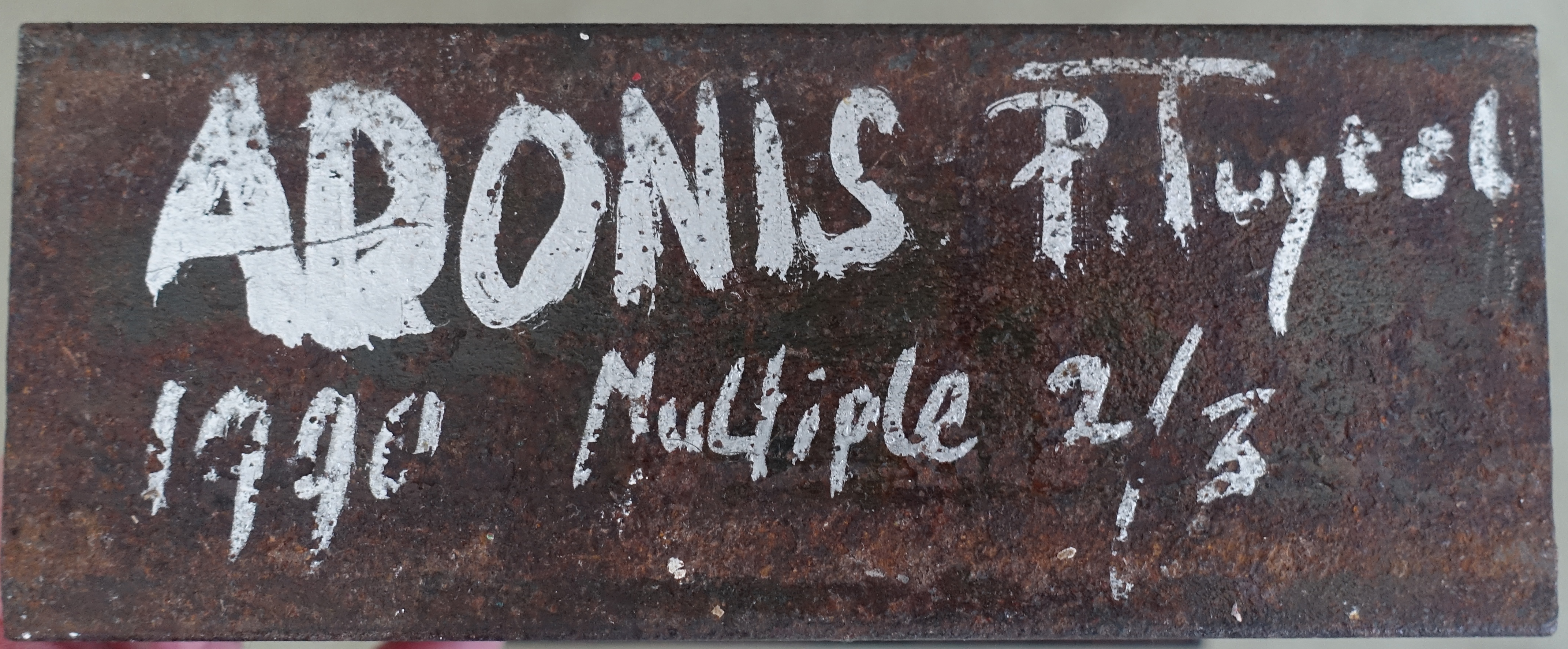 I just “discovered” Piet Tuytel and his art and made my first acquisition. I have encountered his works on numerous auctions and always thought his work to much random, but now that i have read more about the artist and have seen some of his works exhibited, i must alter my opinion. This is far from random. He varies on a theme and uses the materials you can find at construction markets in a way nobody does. Using colors to enhance and constructing/ welding materials to make his sculptures and multiples. The multiple i have acquired is one from a series of 3. Signed numbered and dated 1990. In this period he uses rubber hoses. mesh, constructing steel and in this case a baking form for cakes. The impression he makes with this ‘ ADONIS” is a strong person perhaps a body builder , just the outline and one keeps being fascinated by the materials used. Rough , but a joy to look at and admire. The “Adonis ” sculpture is now available at www.ftn-books.com