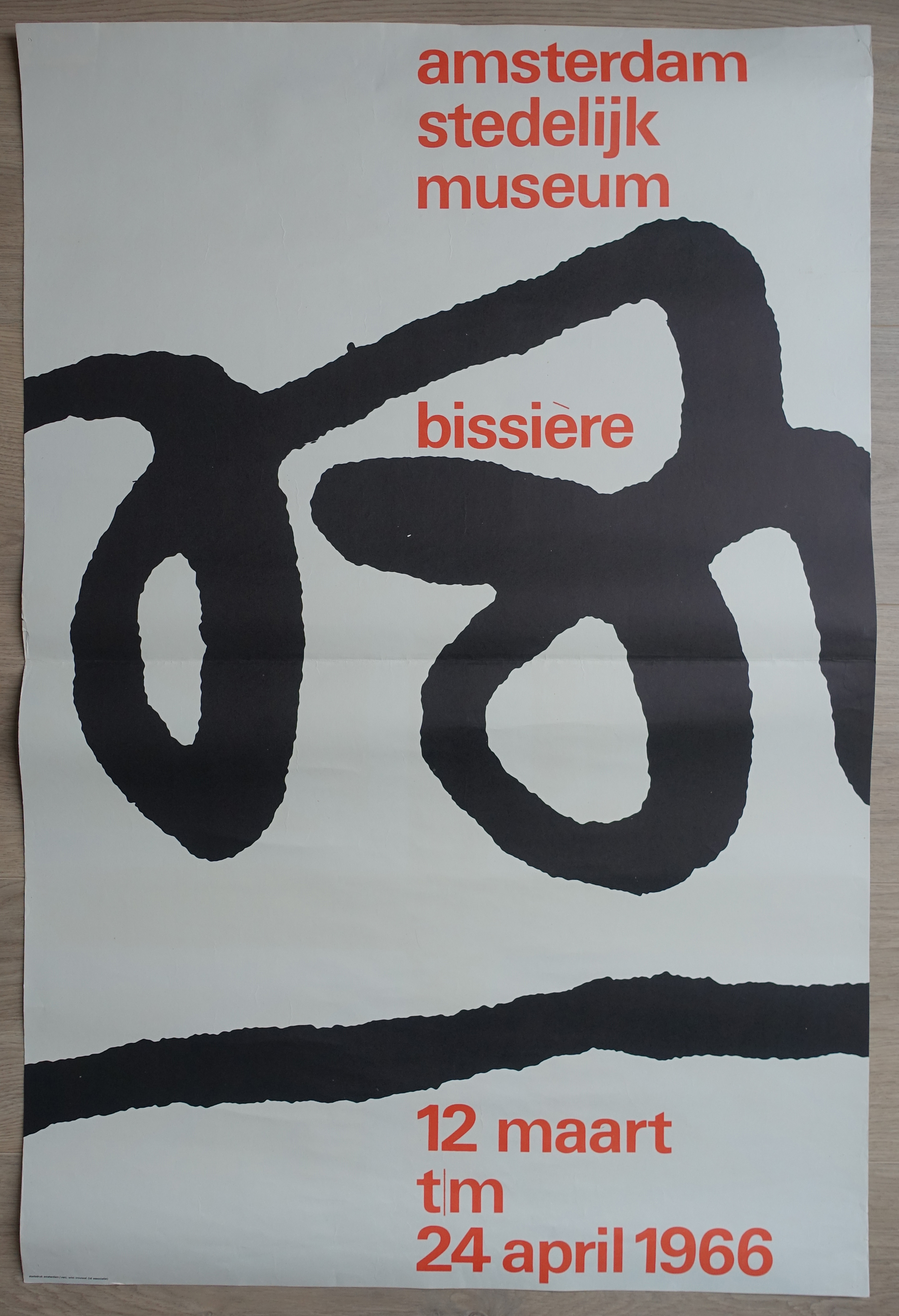 Roger Bissiere held an exhibition in 1958 at the Stedelijk Museum. Catalogue and poster were designed by Willem Sandberg. In 1966 it was again time for Bissiere to show his latest works. This time Wim Crouwel designed both catalogue and poster. With the poster he was inspired by the one Sandberg had designed before. The poster is almost classic Sandberg in its approach. Colors, graphic design. red lettering all strongly influenced by Sandberg. But the catalogue!…there it was ….a typical Crouwel design…., size, binding, colors every aspect oozes Crouwel. Here are both and both are available at www.ftn-books.com.
