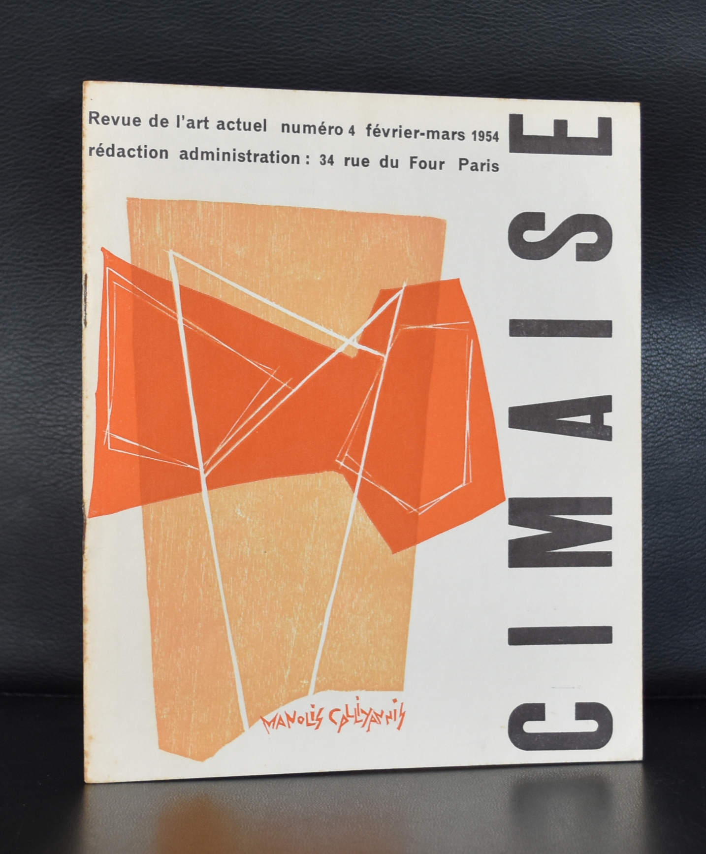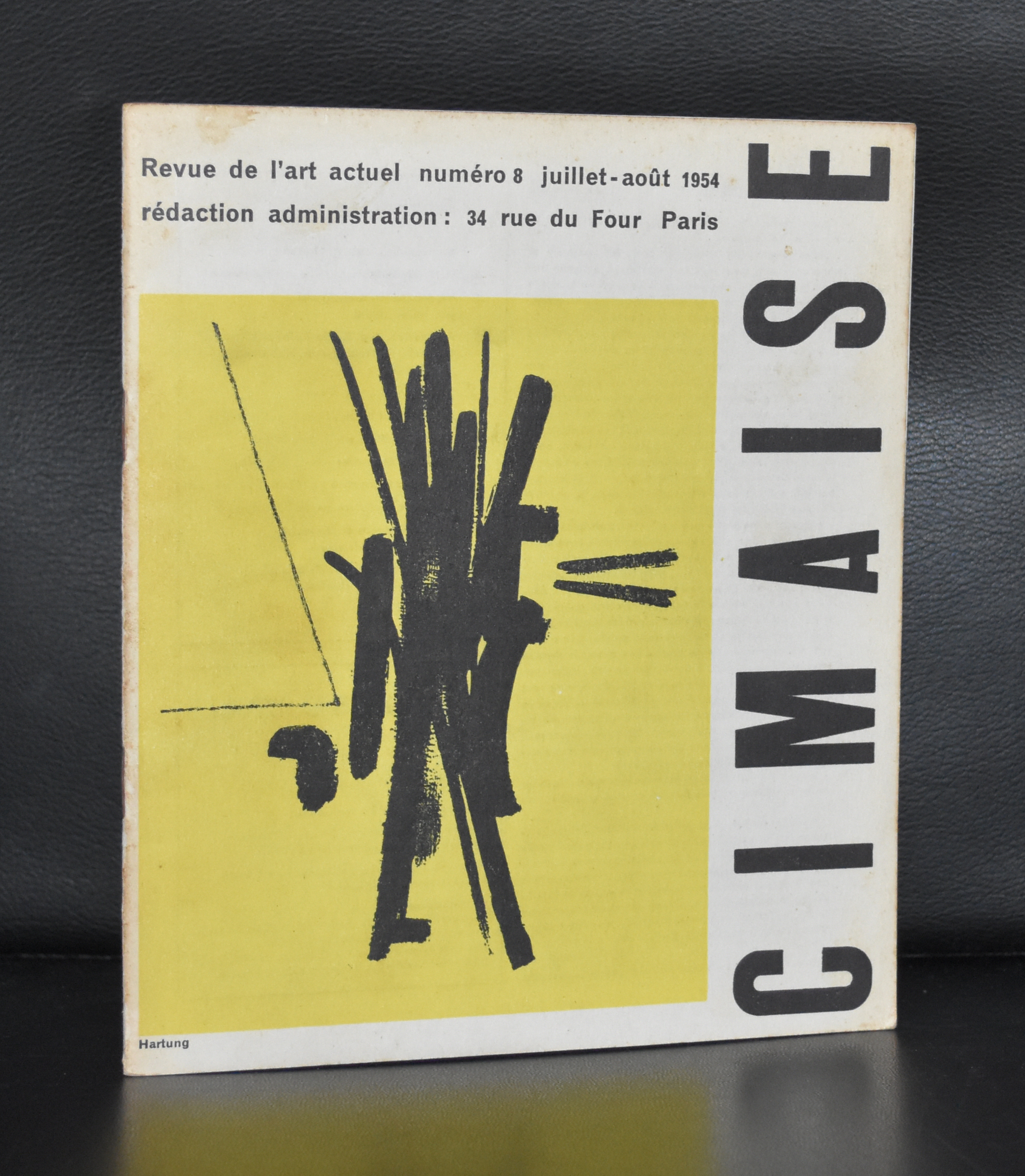 Arguably the most important french arts magazine was Cimaise. First published in November 1952 . this “Revue”, published by the galerie Arnaud/ Jean Robert Arnaud stayed a major force in and was of great influence on the french art scene in the 50’s and 60’s. The magazine was published from 1952-2000 and from 2002-2009. Specially in the early years the magazine was published in a way, that now these volumes are considered the best and are searched after because of the special ( printed) covers . www.ftn-books.com is lucky to have some of the very first volumes from this impressive magazine . There are volumes from 1952,1953 and 1954 available.