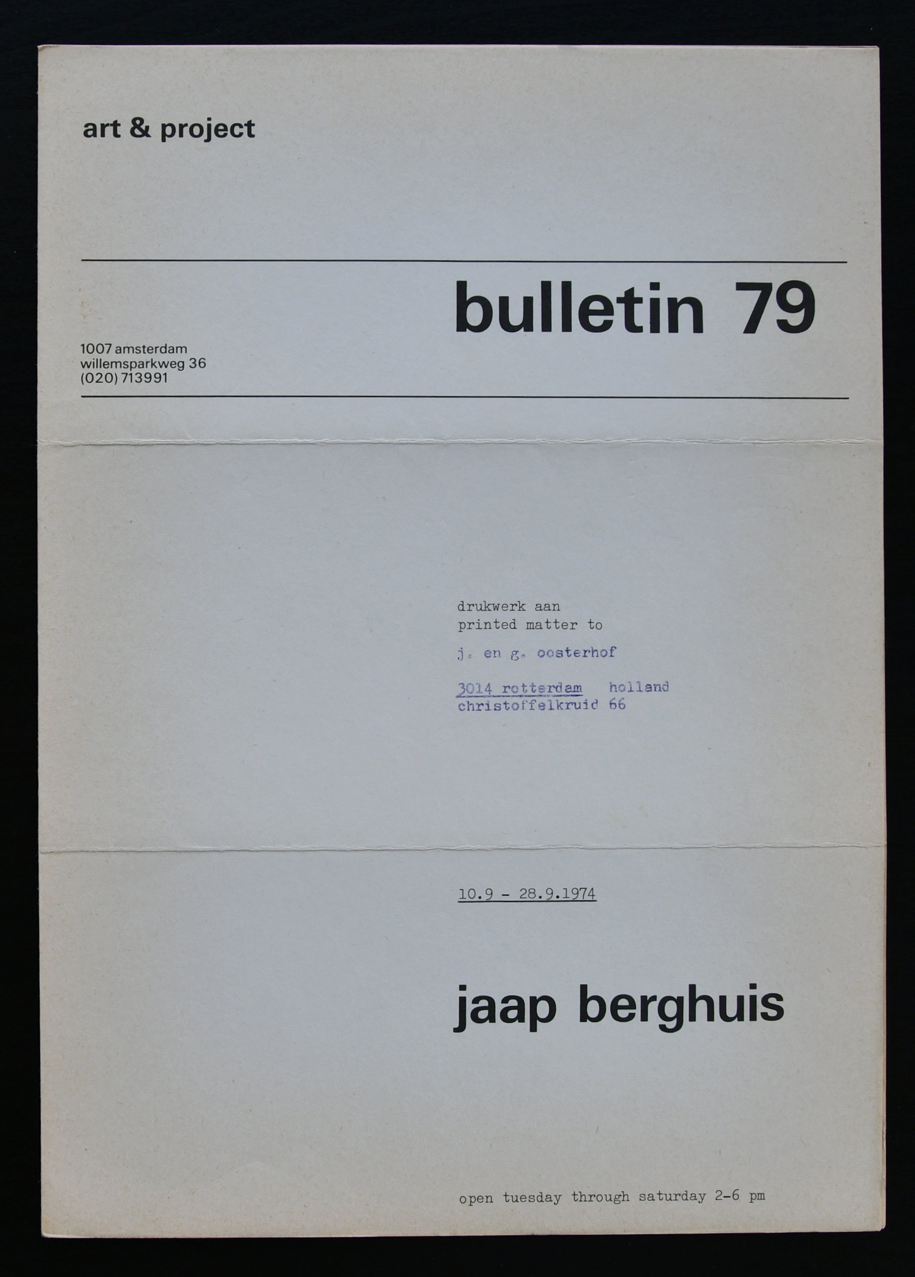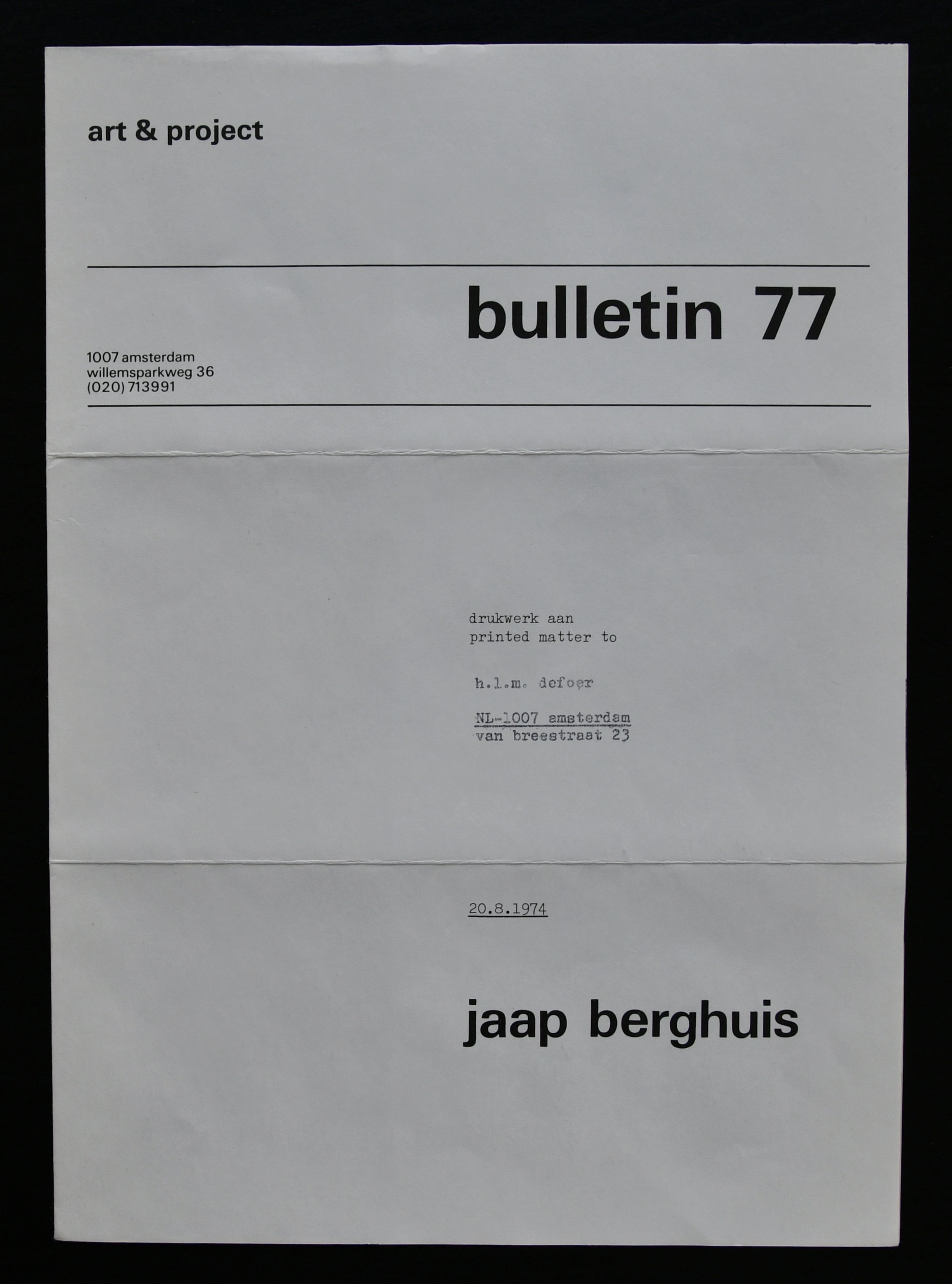One of the most outstanding books on the complex world of Conceptual Art in recent years is undoubtedly “IN & OUT of AMSTERDAM/ Travels in Conceptual Art 1960-1976.” This book holds a special place in my heart as it is a veritable treasure trove of ideas and exceptional publications that can still be found on the market. Published by MoMa, the same institution that held the exhibition of the same name in 2009, “In & Out of Amsterdam” showcases the most significant and arguably best works of the following artists: Bas Jan Ader, Stanley Brouwn, Hanne Darboven, Jan Dibbets, Ger van Elk, Gilbert & George, Sol LeWitt, Charlotte Posenenske, Allen Ruppersberg, and Lawrence Weiner. These exceptional artists were all featured in the Bulletins series published by Art & Project, and their publications have now become highly sought-after collector’s items. As these publications have been scarce since their initial release and have now been around for over 40 years, I highly recommend starting a collection of them while they are still accessible. Check out www.ftn-books.com for more information.