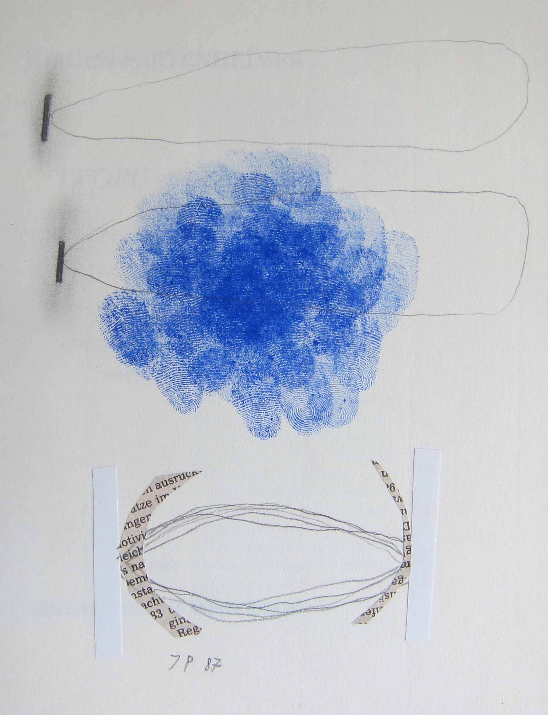 Since the beautiful WELTACHSE V blue sculpture in the inner garden of the Gemeentemuseum i have been a loyal fan of Jurgen Partenheimer and build a nice collection of books on this fascinating artist. I am not the only one, because a few years ago a managed to acquire a selection of books from another admirer and upon studying them i found some original art work on their title page. One of these books i want to share with you. It is not for sale but shows the quality of Partenheimer’s work. Of course i must make the picture complete and show you the books that are for sale and will do so tomorrow, but for now there is only this very nice small publication. Originally published in an edition of 500, but only 10 were numbered and had a beautiful little drawing on their title pages.