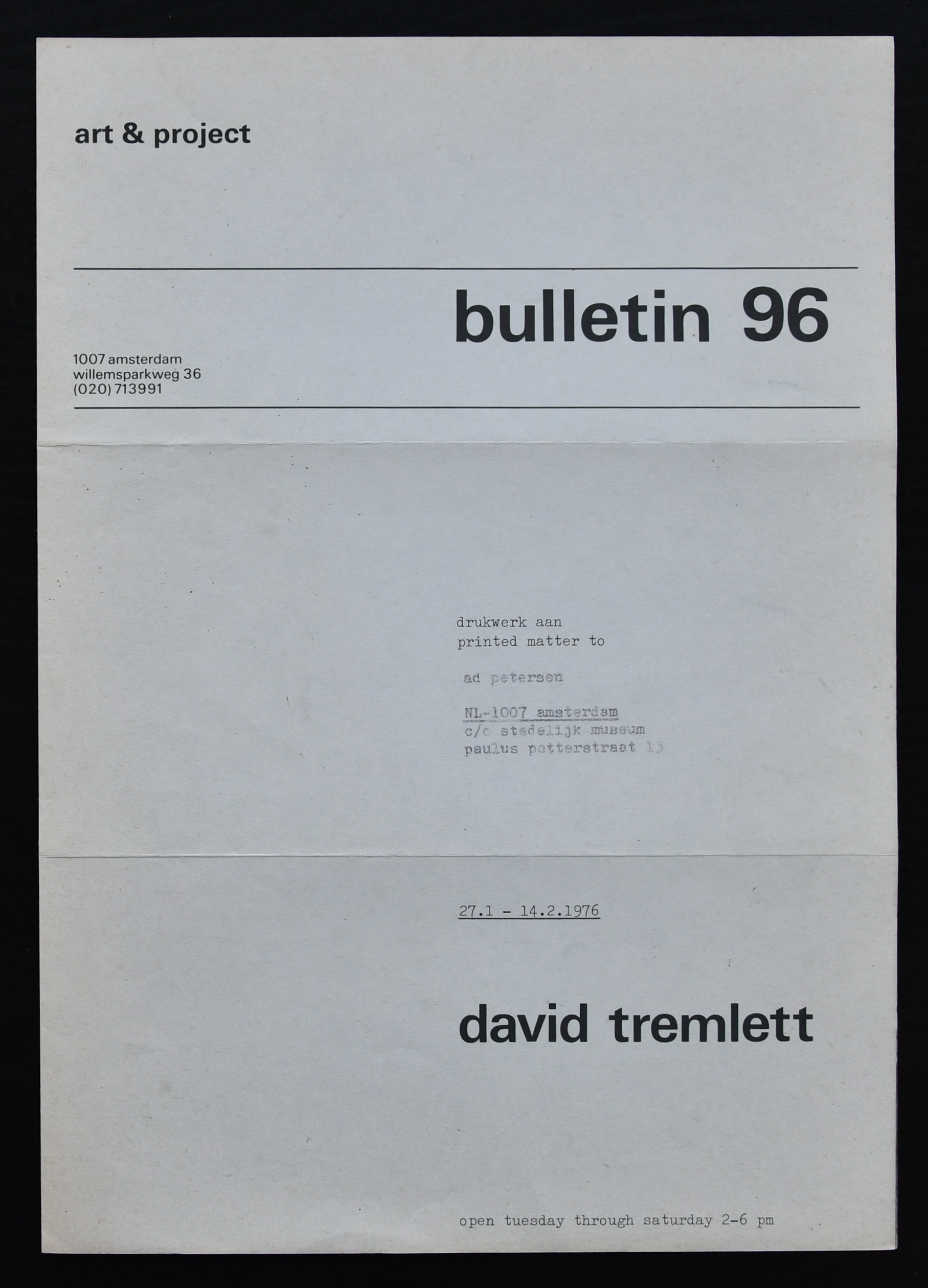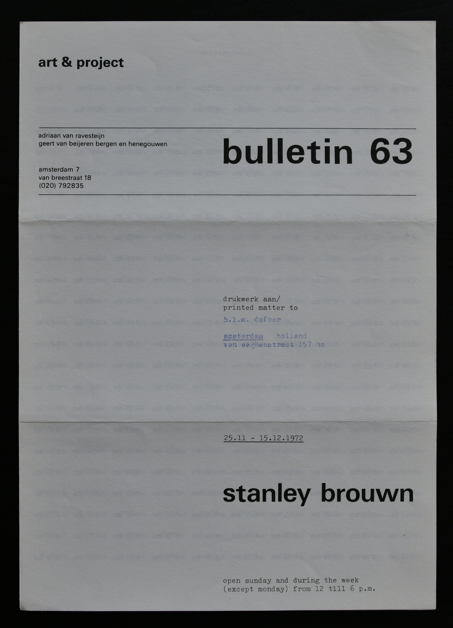 Ger van Elk was one of the gallery artists from Art & Project and made 7 Bulletins for the gallery. ( all 7 are available at www.ftn-books.com)