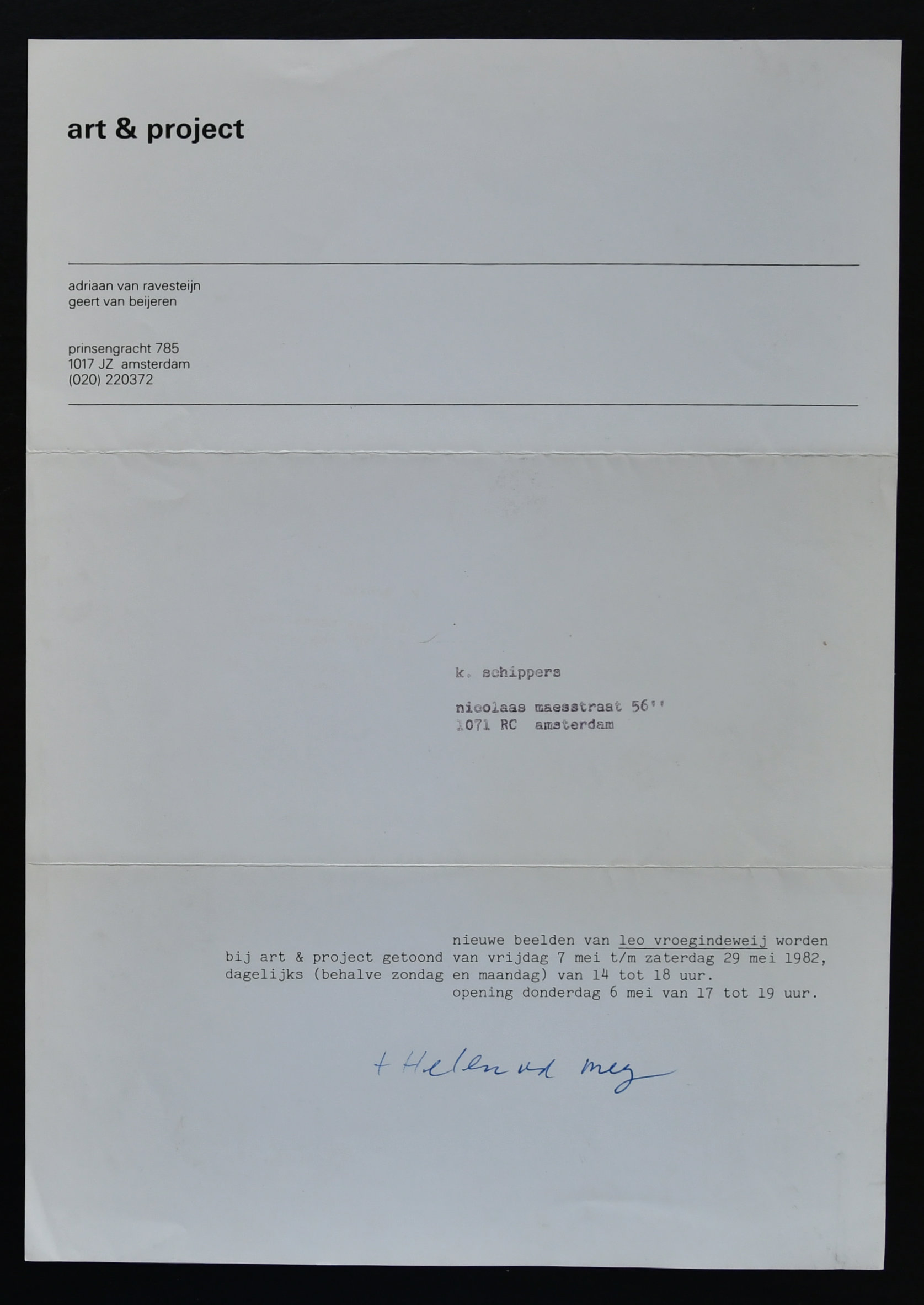 People following this blog know that i have acquired a large collection with Bulletins and invitations of the Art & Project gallery. Geert van Beijeren and Adriaan van Ravesteijn have published in nearly 30 years numerous publications. Bulletins, Catalogues, invitations, multiples and letters. Here is the final announcement of all their activities. In dutch they announce the ending of their gallery activities by the end of August 1998. This final announcement is now for sale at www.ftn-books.com