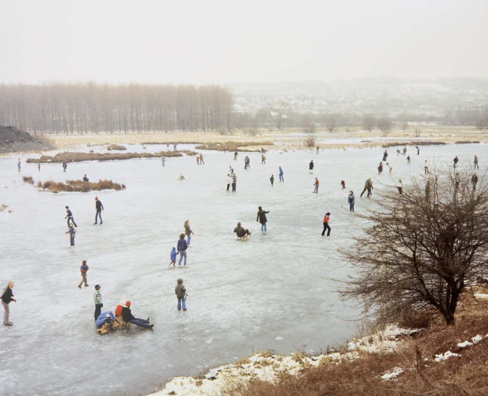 Joachim Brohm brought this approach to a higher level: He combined mostly deserted landscape scenes with his interest in social interaction, turning his photographs into small-scale studies of society. They show how people change the landscape – and how the landscape changes people. He took his photographs of the Ruhr region at a time when theme parks and artificial lakes were being built to help cast off the image of a desolate mining region. Joachim Brohm shows this transition from work to leisure which accompanies the transformation from rural to urban from the perspective of a neutral observer. He sends the viewer on a mystery tour: “I wanted to show people in an environment undergoing change: What do they look like, what are they doing, what activities stand out?”