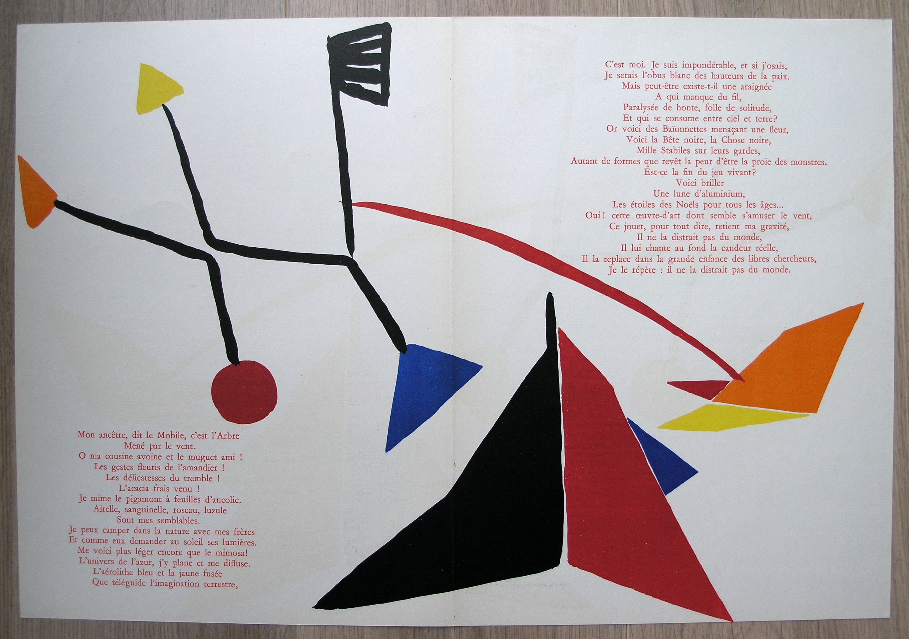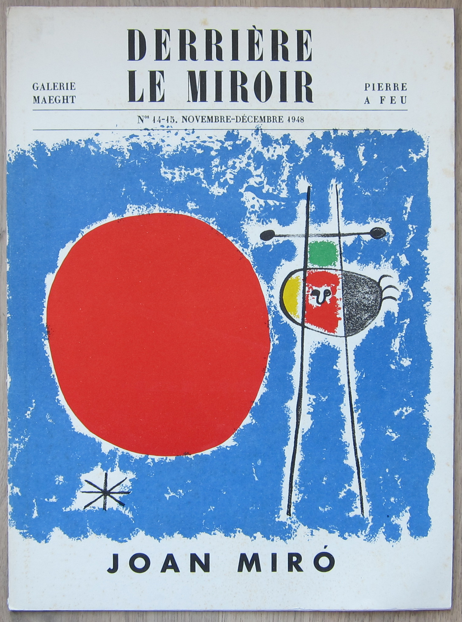 Maeght editeur is one of the leading art publishers from the last 50 years. Beside the exhibitions they organized, they are also a very influential publisher in the art scene. One publication in particular stands out …and that is the DERRIERE LE MIROIR series….which was published from 1946-1982. Many great names were presented within this series and beside the many Miro publications, there were also volumes devoted to Picasso, Braque, Calder, Bazaine and many others. What makes this series so great is the original lithographs that are included in each volume. Beside the normal illustrations there were original lithographs in almost each volume. depending on the number of pages there were at least 2, but in many cases 8 to 10 originals to be found in each number and sometimes they were printed over 2 pages, which made the size 22 x 14.8 inches. really impressive and because they were not numbered nor signed they were published with a reasonable retail price, but they stayed affordable and when you calculate the price per original lithograph, they are right out “cheap”.