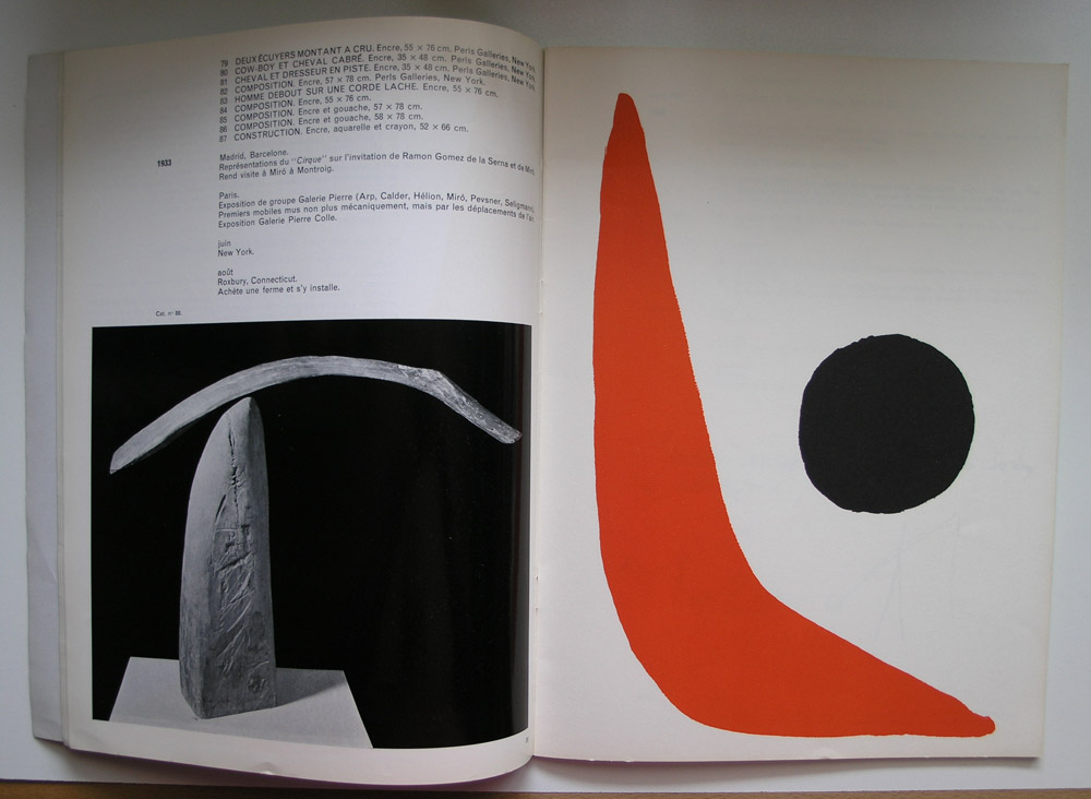 There are 3 Calder catalogues published by the Stedelijk Museum ( 1947,1959 and 1969). 2 of them are available through www.ftn-books.com. The first 2 were designed by Willem Sandberg and the last one by Wim Crouwel. Many colelctors like the 1959 catalogue , this because of the bald design and great prints on the cover, but for me the 1949 is the best, much more subtle and a catalogue that shows the design path Sandberg is going to take. Choice of paper, typography and illustrations make this the perfect early Sandberg publication.