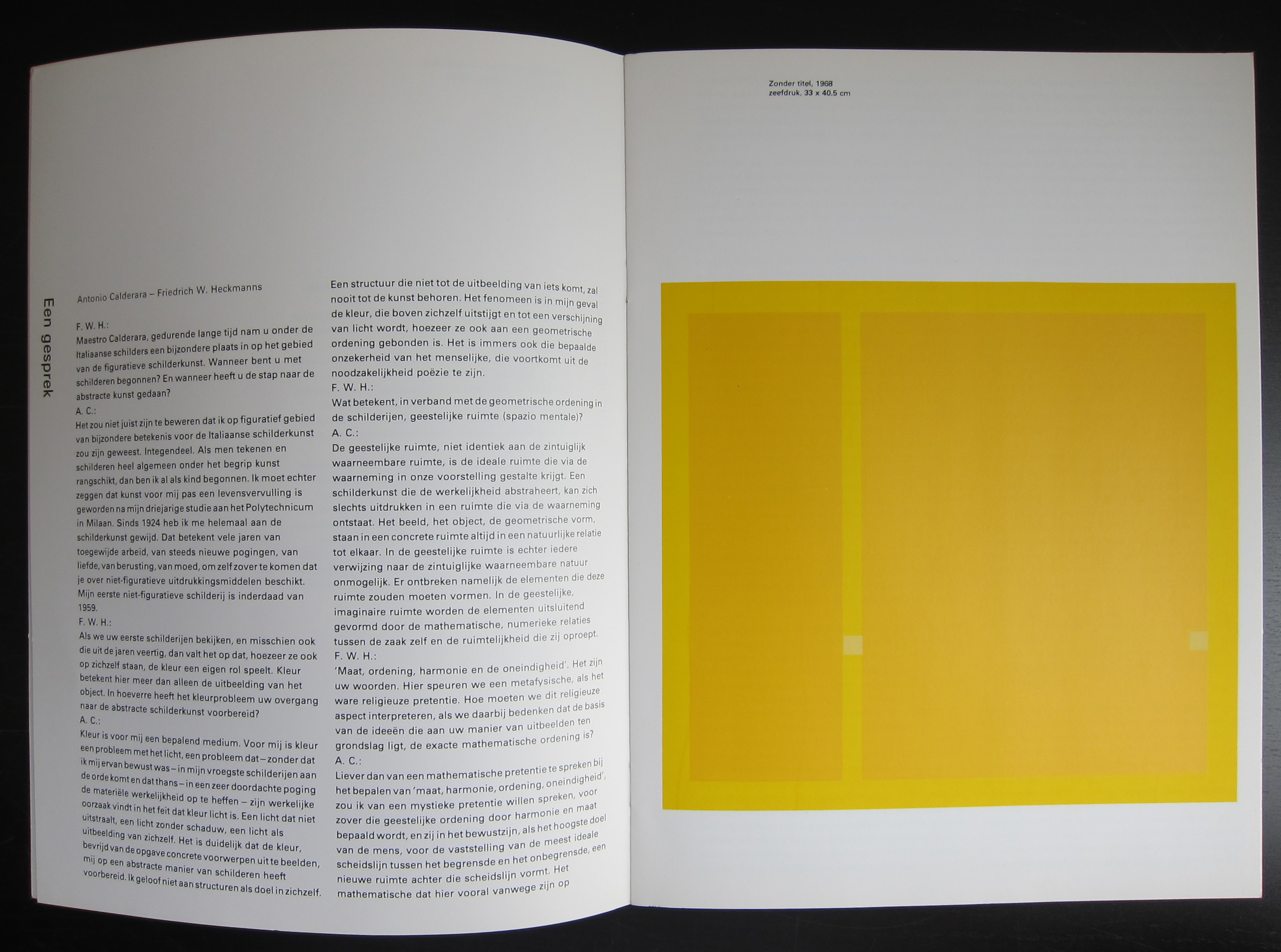 It is his abstract period that Calderara is most renowned for. His abstract paintings from the late 1950s and 1960s fuse geometric abstraction with a hazy finish, creating a misty quality through subtle, almost imperceptible variations in color.