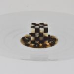 I had the very strong impression that this great chef is inspired by art. Not the taste of course ( which is by the way exquisite), but the plates look all like small pieces of art and go way beyond the regular way in making up a plate. another example is the “amuse” of mackerel which reminded me of a very small painting by Fiona Rae which is available at www.ftn-books.com.