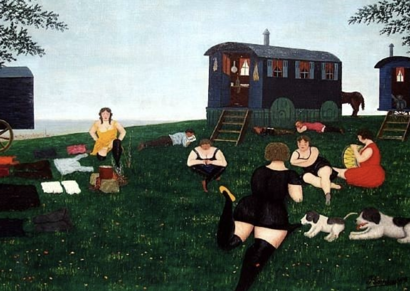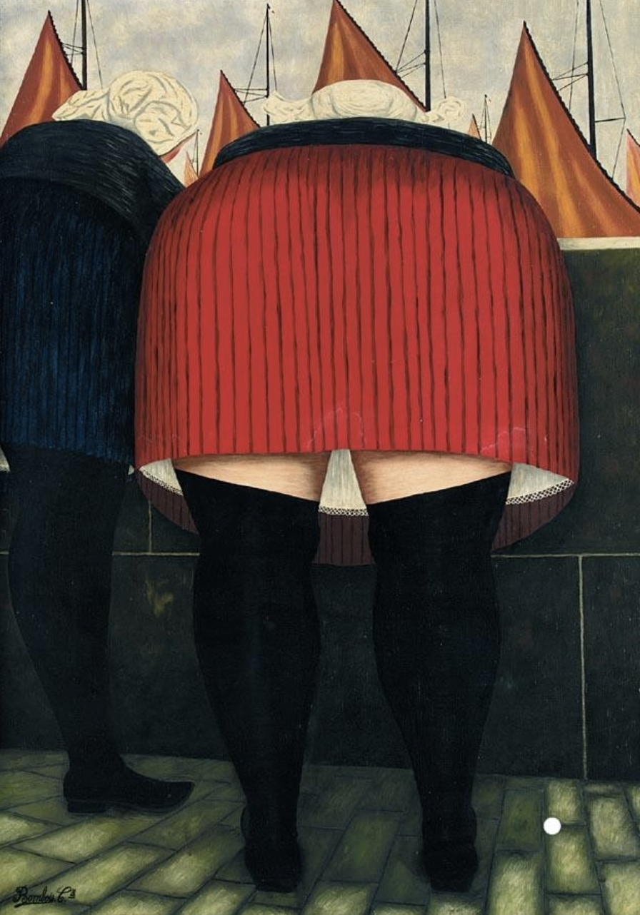 The paintings of his maturity are bold in color, featuring strong contrasts of black, bright reds, blues and electric pinks. Drawing from his own experiences, he often painted circus performers and landscapes with fishermen. His paintings of women are emphatic in their carnality, and his landscapes are notable in their careful attention to space, and to the effects of reflected light on water. Bombois’ works are on view in many public collections, notably the Musée Maillol in Paris. The above text was found on Wikipedia