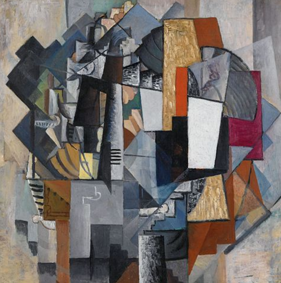 Popova was born into a wealthy family of Moscow factory owners, which secured her a quality art education. After studying in the studios of Stanislav Zhukovsky and Konstantin Yuon in Moscow from 1907 to 1909, she traveled to Italy, where she was strongly drawn to the monumental art of the early Renaissance. She then traveled to Pskov and Novgorod to study iconography. In 1912 Popova met some of the leading masters of the Moscow avant-garde gathered around Vladimir Tatlin, and for some time she worked at his studio, together with Nadezhda Udaltsova, with whom she was to develop a close friendship, and Aleksandr Vesnin (see Vesnin brothers). Popova, Udaltsova, and Vesnin developed close creative and personal friendships and love that would last throughout Popova’s short lifetime. During this period Popova visited Sergey Shchukin’s renowned collection of French art and, drawn to Cubism, traveled to Paris with Udaltsova. The Académie de la Palette, where Popova and Udaltsova studied Cubism with Henri Le Fauconnier and Jean Metzinger, was to prove a crucial step in Popova’s artistic development.