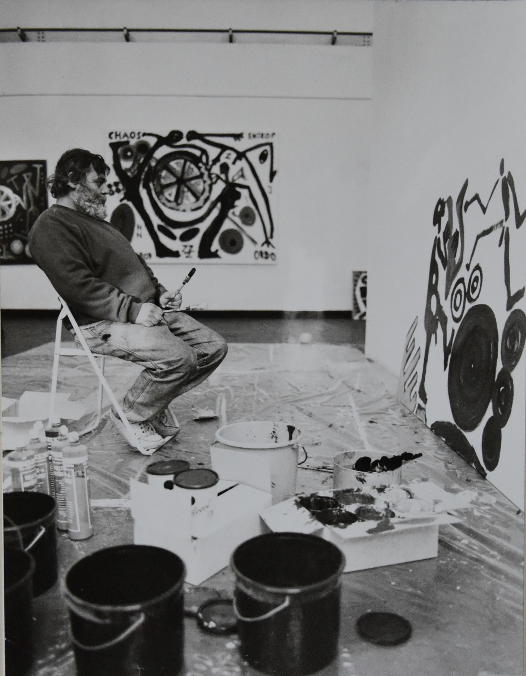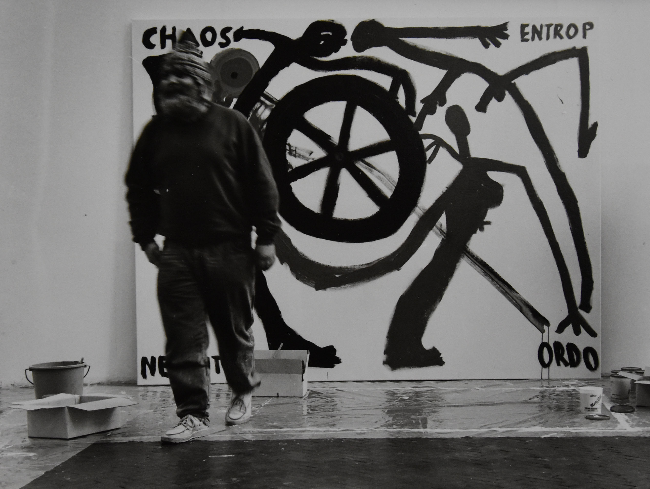 A.R. Penck died 6 days ago i learned today from the Volkskrant newspaper and this brought back memories to the time Penck was invited by Rudi Fuchs to the Gemeentemuseum at the time he had an exhibition in galerie Auerbach in Amsterdam . It must have been somewhere in 1989 and Penck made some paintings on the spot in the museum and opened the exhibition with a drum performance. Because of the Amsterdam exhibition a nice box in a limited edition of only 10 copies was published and it contained 20 original photographs of Penck at “work” an extremely rare box which is nowhere offered, except at www.ftn-books.com ( not shown in te shop / if interested inquire ).