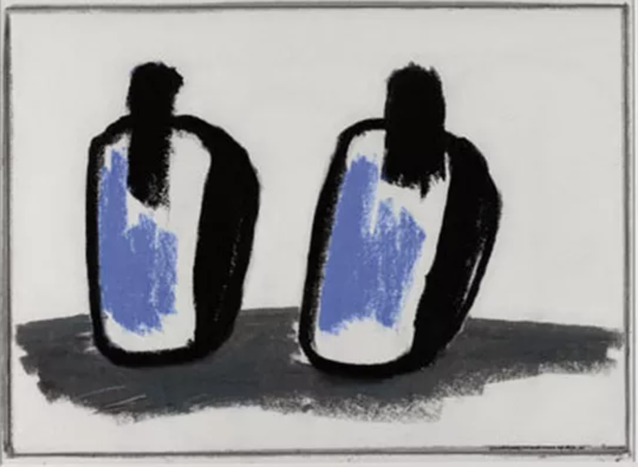 Try to find information and a portrait of Chris de Bueger and you will have a difficult time ahead. Because of a publication i bought some years ago ( piece of oil painting on the cover) i started to search fo the artist. No portraits , no text, just some abstract paintings and apiec of canvas ( painting) on the cover of the blue book.