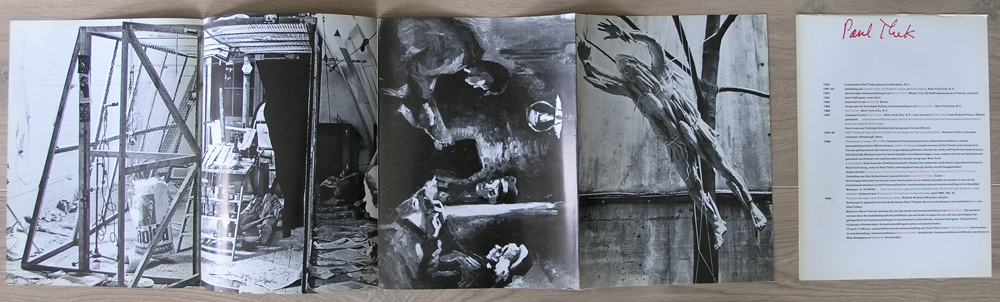 In 1969 Thek was introduced to the dutch museum audience with an exhibition in the Stedelijk Museum Amsterdam for which Wim Crouwel designed a nowadays sought after small publication, which more can be considered as an art book than a catalogue. Beside this collectable publication a much larger publication was published in collaboration with Edwin Klein. This book is now considered as the most important Thek publication. Title is “A DOCUMENT BY PAUL THEK and EDWIN KLEIN”. This is an extremely rare publication published by the Stedelijk Museum and the Moderna Museet /Stockholm. Only a few art book dealers offered this publication in the last 5 years. This title is now for sale at www.ftn-books.com