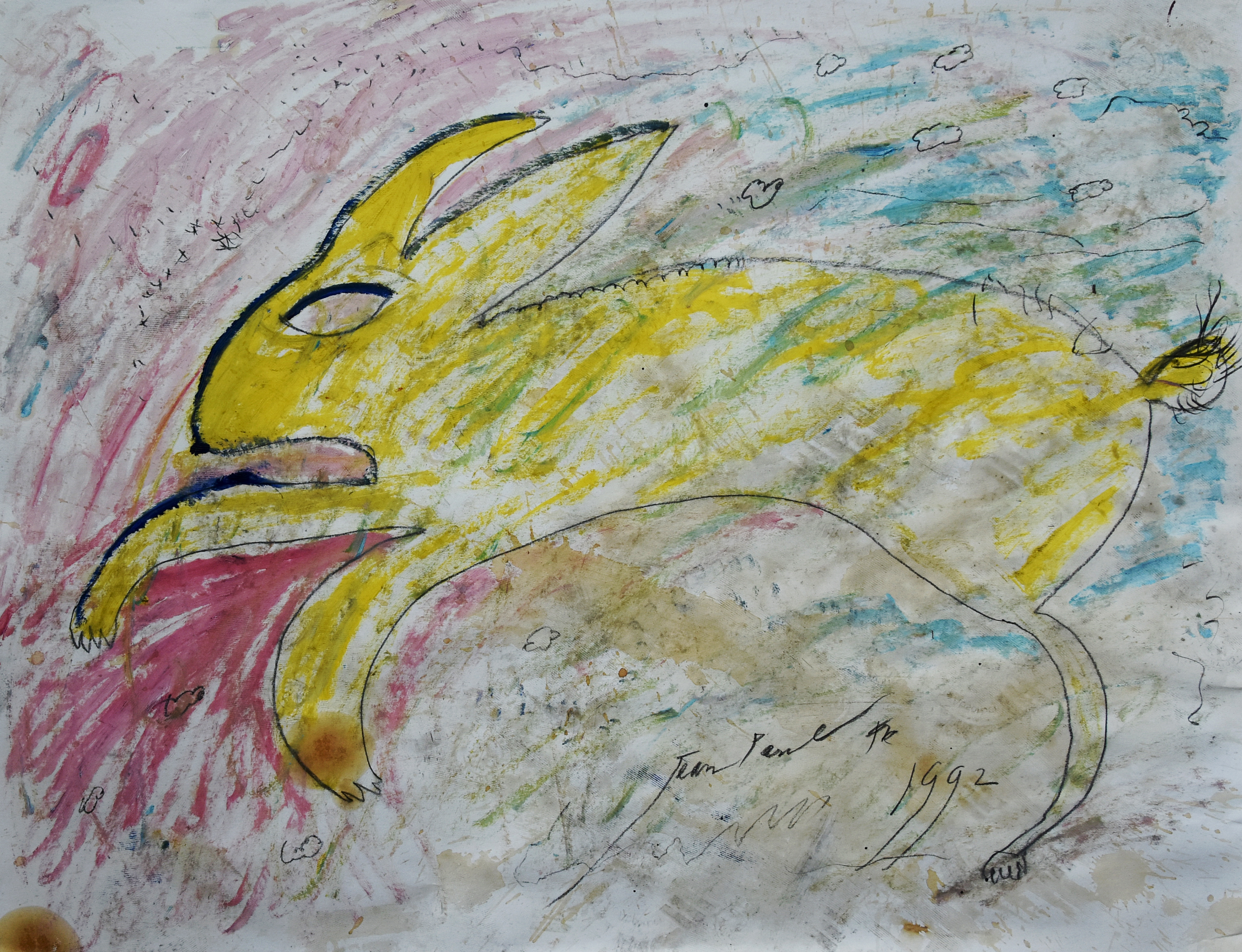 It has been almost 20 years ago that i acquired my first Jean-Paul Franssens drawing and since, ever when i had the opportunity to acquire another work ,i did and finally yesterday i was presented with the latest addition to my collection … a beautiful large yellow rabbit from 1992. I am proud to show you the collection as it is now and please look at www.kunstveiling.nl for the prints by Jean-Paul Franssens which i am offering now.