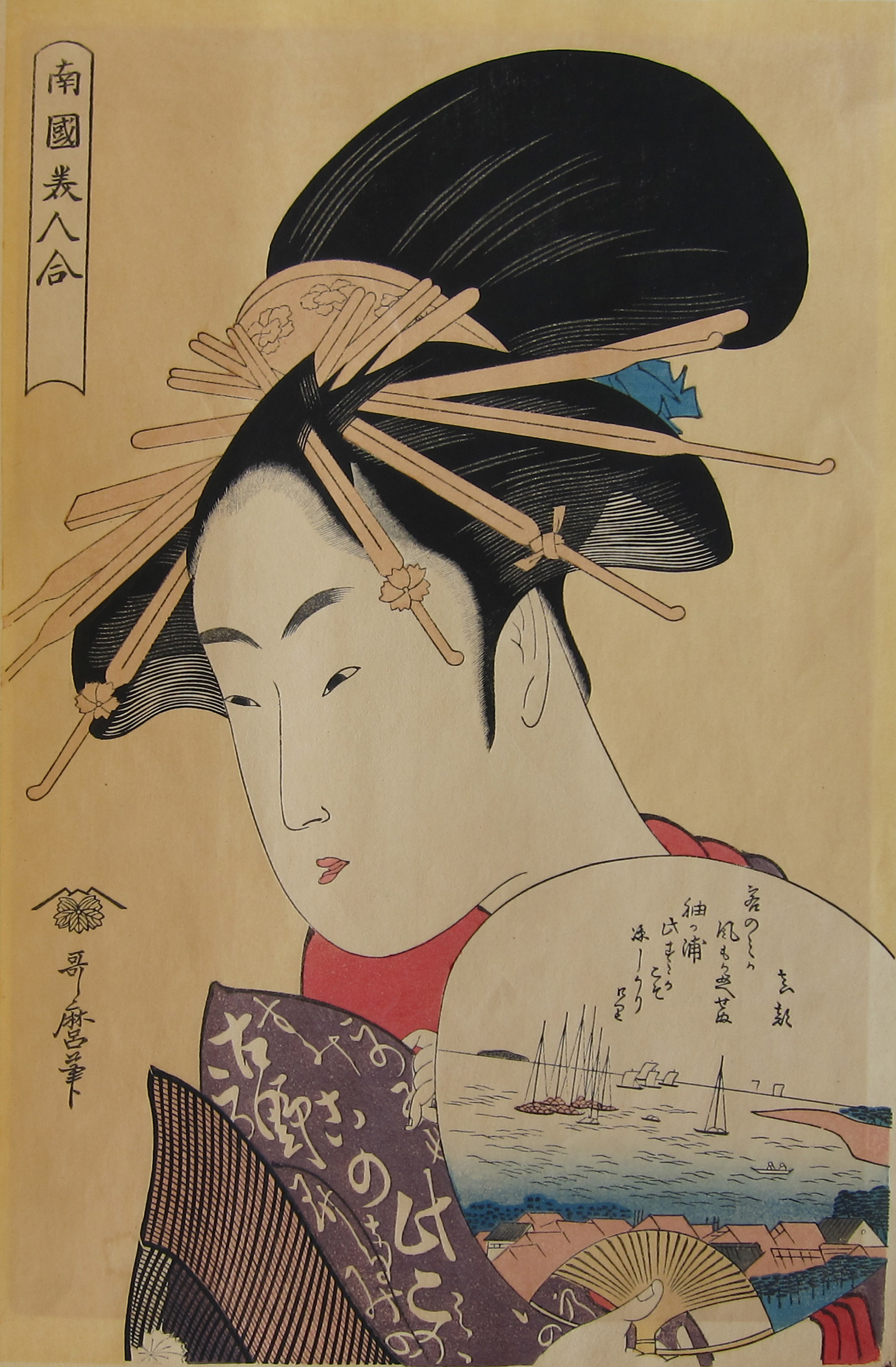 Where Harunobu’s craftmanship is rooted in the tradition of Japanese print making , i find Utamaro’s prints being far more inventive. His lines are clean and do remind me a little of the outlines used by Herge and Joost Swarte. Classic scenes, actors and geisha’s and even shunga prints, all is mastered by this great Japanse artist. These prints were “In Vogue” by the impressionist artists and that is one of the reasons why so many of them can be found in Western Europe. Monet had them, van Gogh collected them and even made some paintings after them and the Rijksmuseum has thousands of them in their collection from which a selection is now and then on show. These shows are accompanied by some great bilangual catalogues of which the Harunobu and Utamaro ones are for sale at www.ftn.books.com