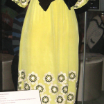 His best known and most audacious designs are a series of full-length columnar opera coats that begin in 1911 and culminate in the 1919 Paris Evening Coat, merely a swath of uncut fabric with a single seam. In a wonderful bit of exhibition magic this Möbius-like feat is demonstrated in a brief digital animation projected on a scrim that then turns transparent, revealing the actual coat behind it.