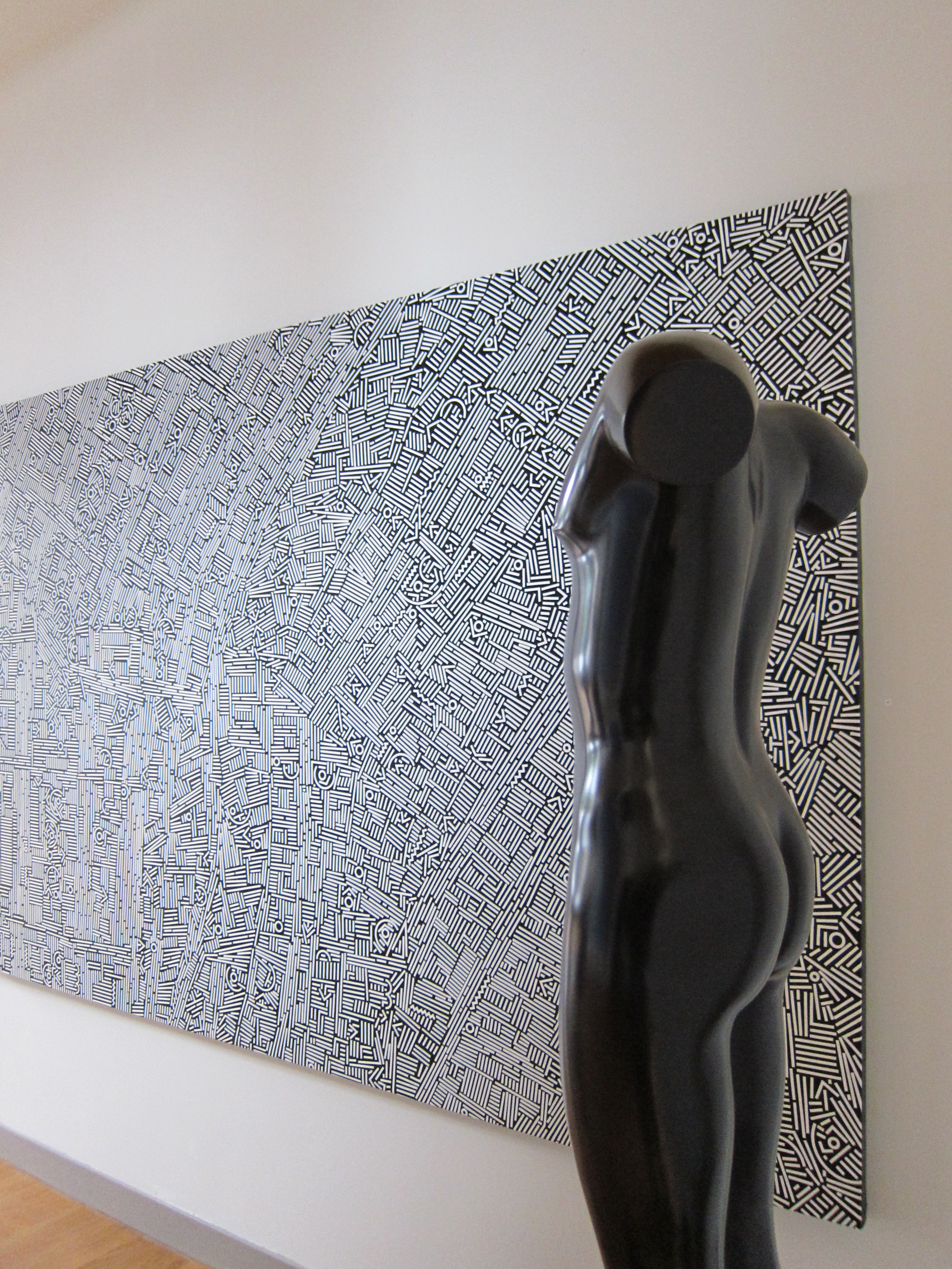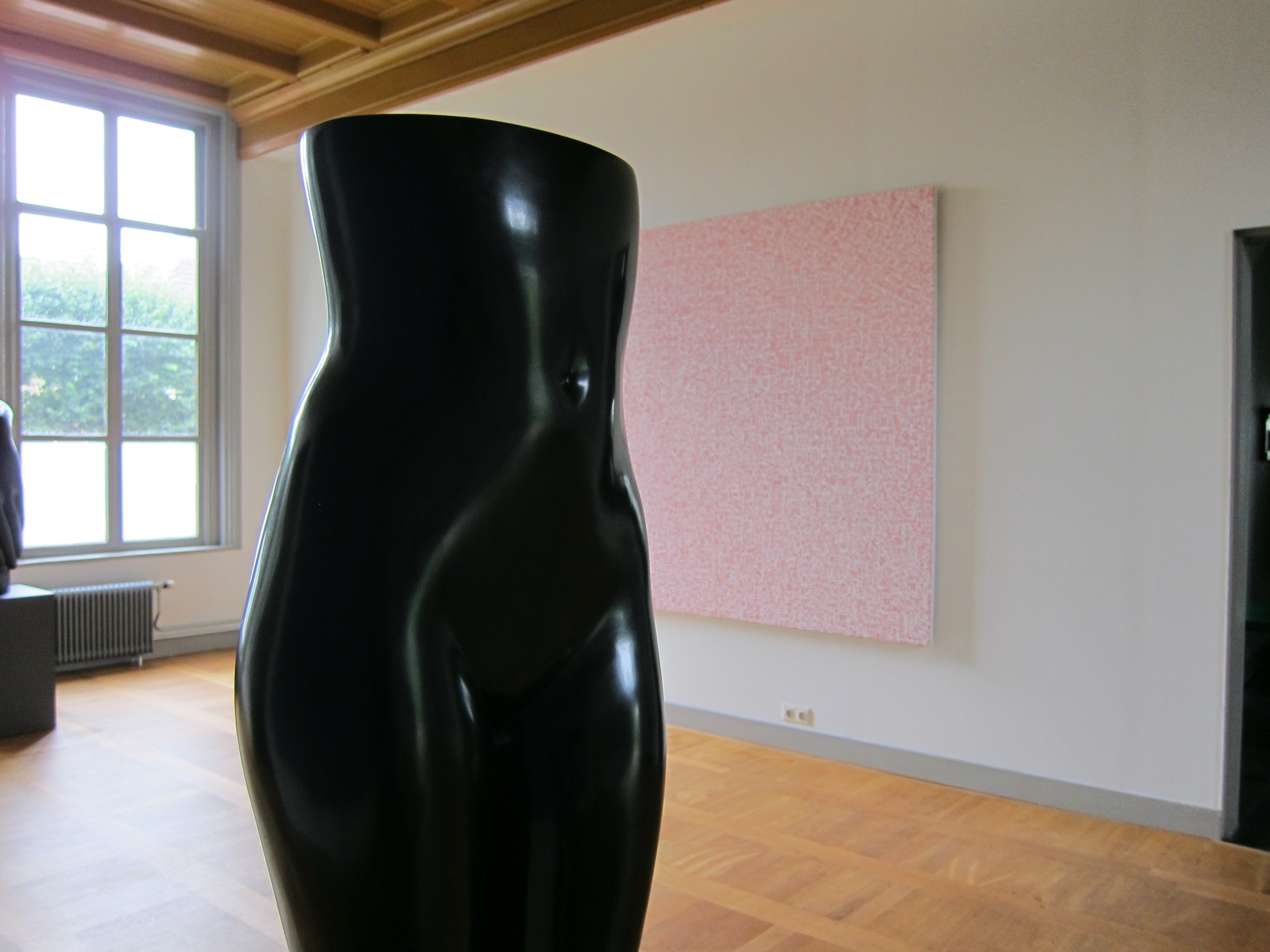 The morning of the 10th it was raining again and we run towards the entrance where we were met by Eja Siepman van den Berg. Turned to the left and walked right into the studio gallery where there was a special exhibition by a Chinese artist Xinjian Lu ( blog in a few days ), together with the statues by Eja. The abstraction of the large paintings by Xinjiang with the bronzes by Eja worked extremely well. Each showed its qualities together with the works by the other and nowhere a work dominated . I took some pictures which show just what i mean. This was a perfect setting for both artists.