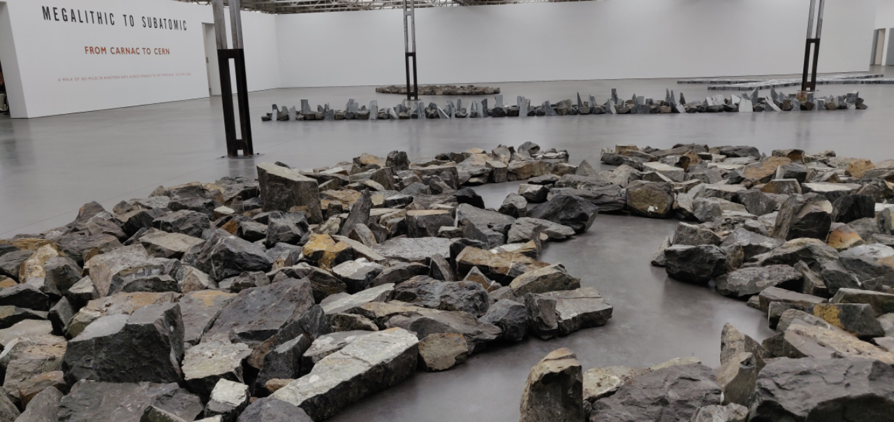 Last week we were in Tilburg to visit the Textielmuseum with the Bauhaus Textiles with our friends David and Monica from the US. Linda and I preferred to see the modern art at the DE PONT instead and we were treated to one of the best contemporary art exhibitions from the last years. In DE PONT there was a special exhibition by Richard Long, who took full use of all the spaces available. The cabinets were all filled with smaller Long works ( except for the Kapoor cabinets ) and the great hall served as the exhibition space for his stone circles, lines and crosses.