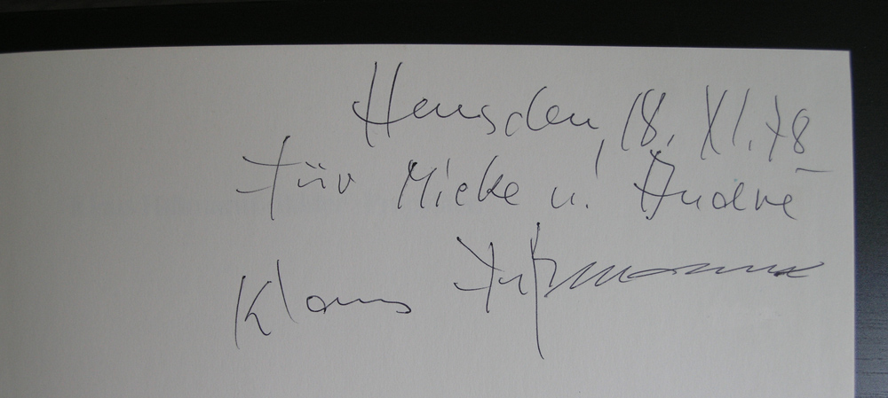 Klaus Fussmann is not very well known outside Germany, but still important enough to devote a blog to this painter. My interest in Fussmann grew when i bought a signed copy of a 30 years old book. It is interesting to see that his style developed into a much more abstract approach to his subjects. If i must compare his works it might me with the later works of the dutch painter Contant. Both found a more realistic style in their paintings with lots of abstract elements. I think Fussmann’s fame stay in Germany only and not cross the border, but for those interested in this fascinating painter, know that www.ftn-books.com has some nice (signed) publications available.