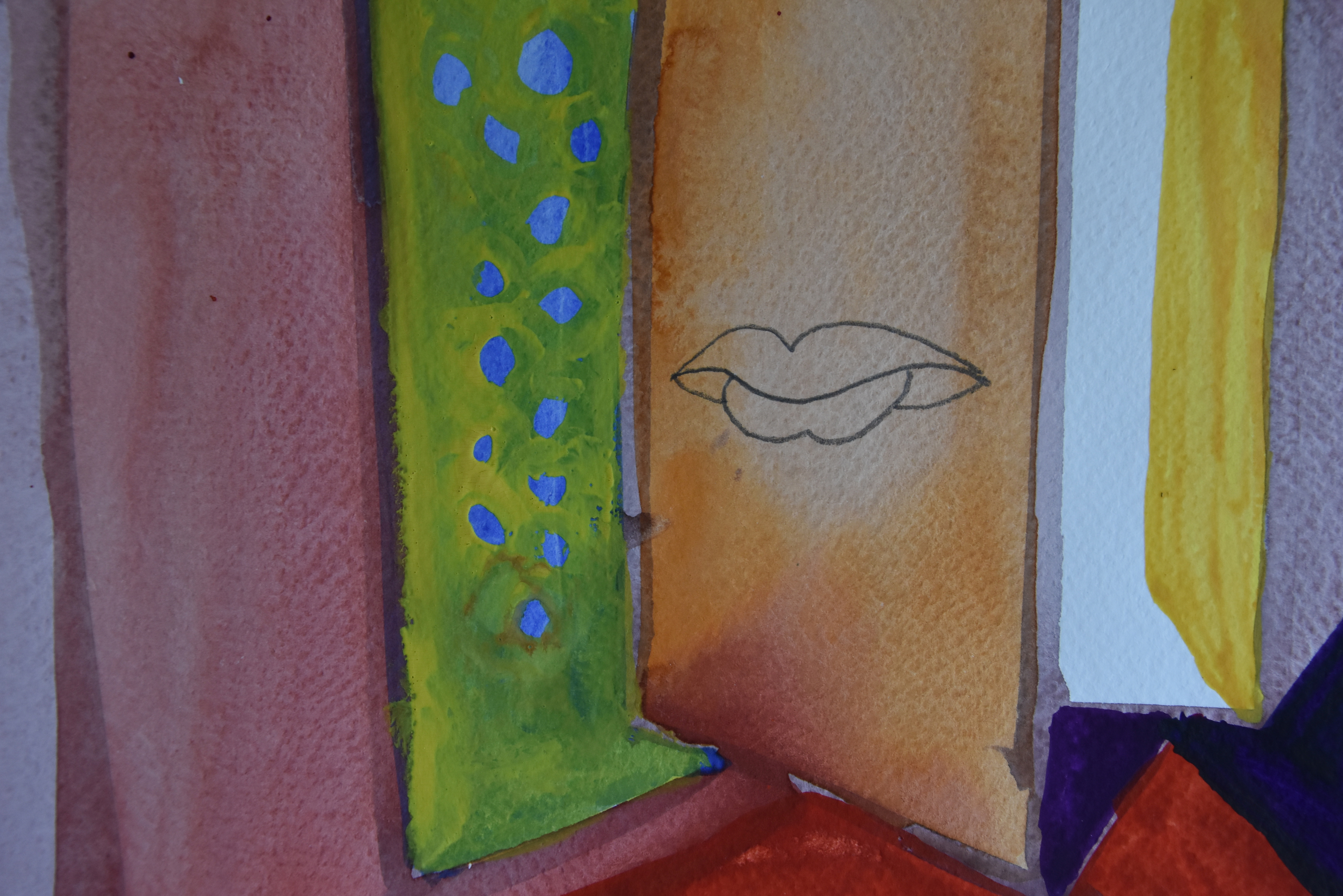 It is certainly not the least out of those three and because if had first pick from the set which was to be sold i chose what i think were the best. Here it is …..A drawing like a series of open books and buildings, with a typical Piet Dirks mouth drawn in pencil upon them. Colorful, detailed and executed on perfectly square paper . It is the ideal Piet Dirkx composition upon a limited surface. (29,8 x 29,8 cm.)