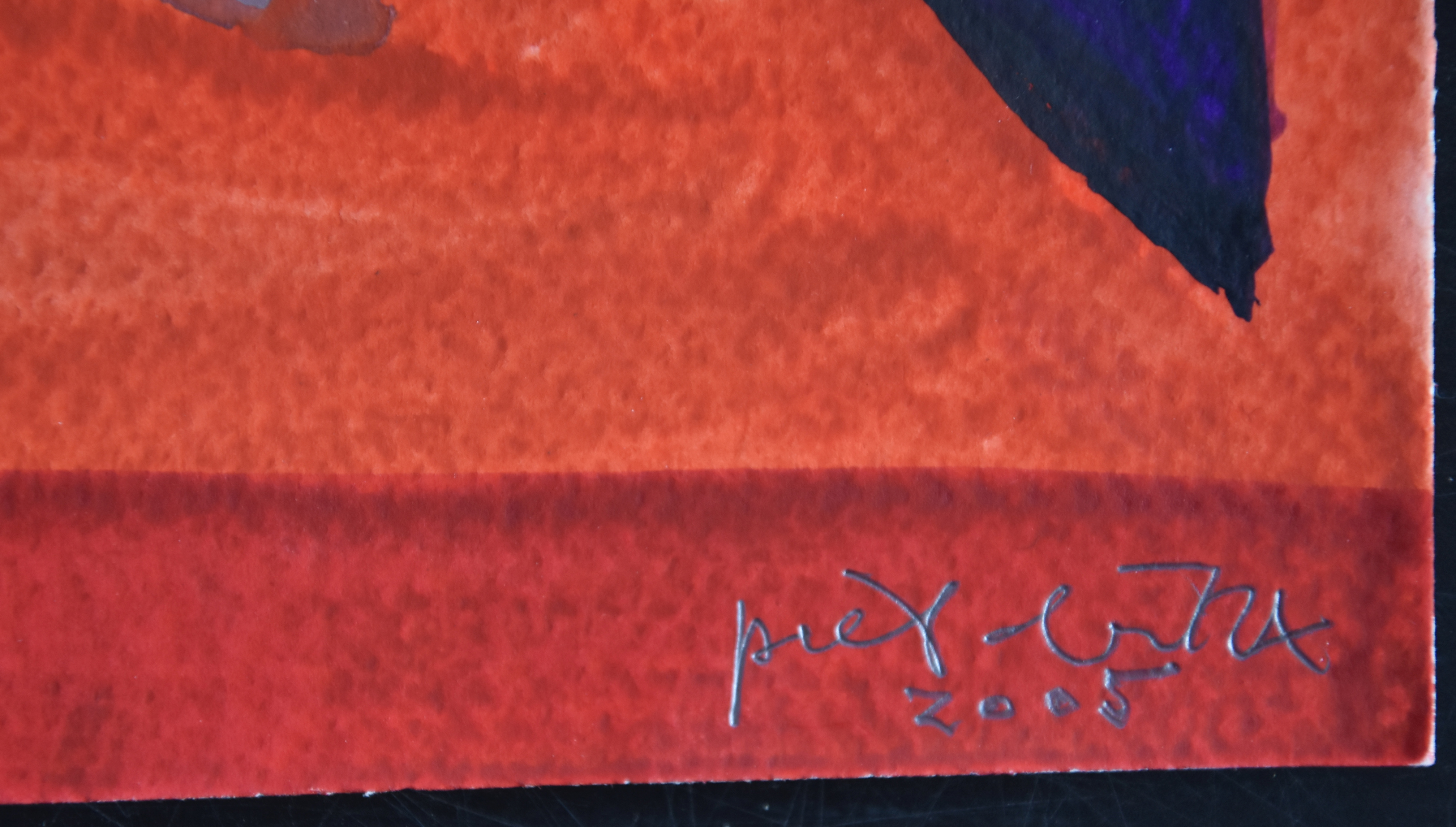We now have had over 600 cigarboxes and another 300 works to come. Among them cigarboxes, large paintings on wood and works on paper. Within the last category you will find the special of today. Piet made in 2005 some drawings/ gouaches to be sold in the shop of the Gemeentemuseum Den Haag and yes….i bought 3 of them and because i can only hang 2 from those three, i decided to sell the one that is still in one of my drawers.