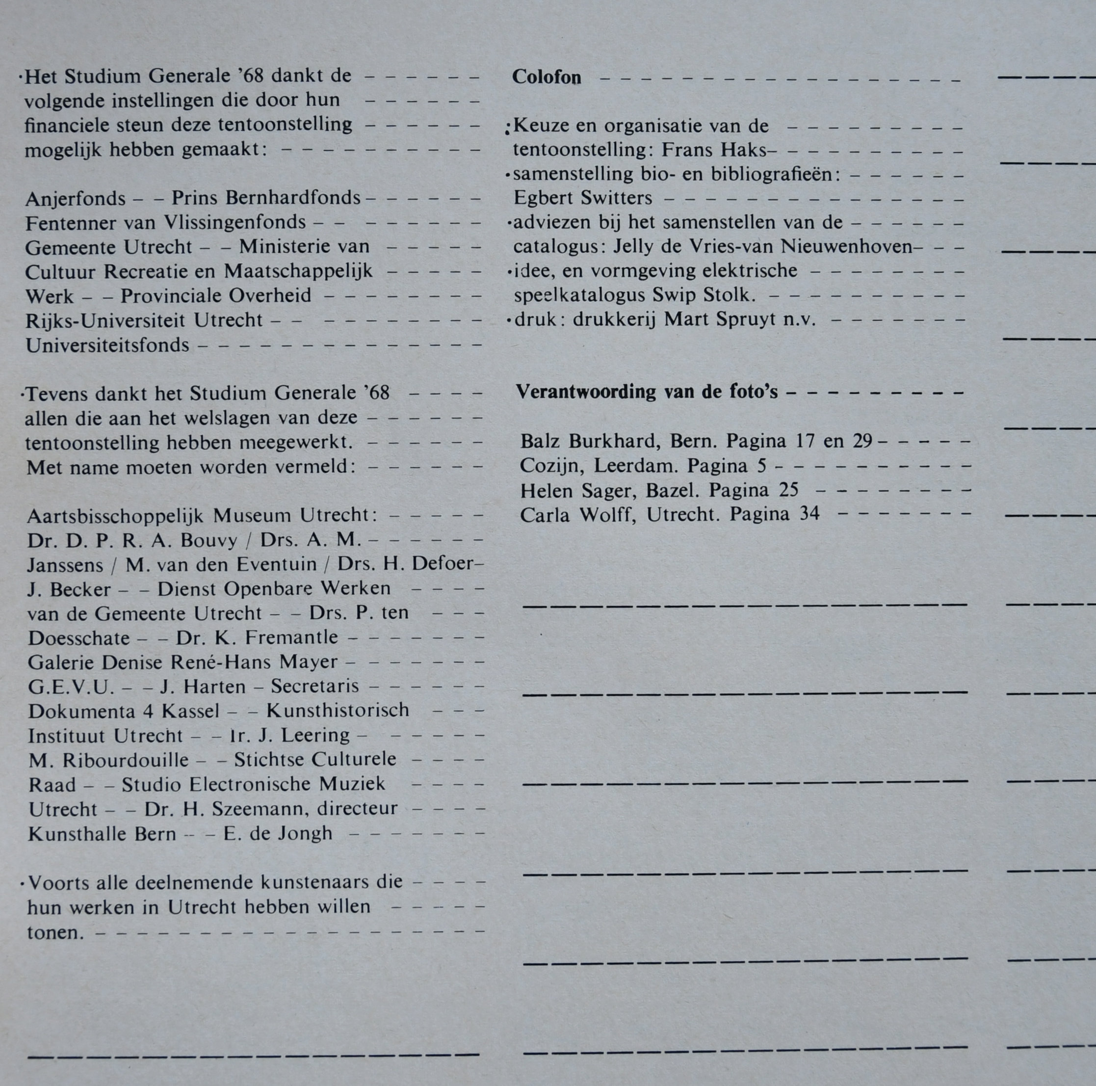 The “creme de la Creme ” all within one exhibition. This exhibition from 1968 is almost forgotten and one of the reasons is the rare catalogue which was published with this exhibition. Now i have one copy available. Text by Frans Haks, design by Swqip Stolk and produced by Jumbo. A classic among the Sixties catalogues in teh Netherlands anmd well worthdt collecting. Available at www.ftn-books.com