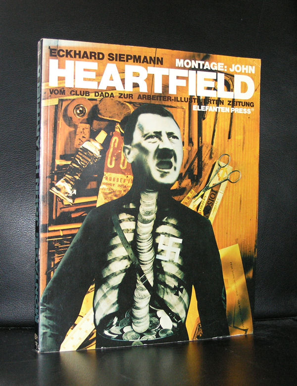 Not only does Heartfield manage to evade military service through a feigned psychological disorder, shortly thereafter, as German zeppelins sow bombs and fear over London, he protests by permanently exchanging his birth name Hellmuth Herzfeld for John Heartfield. In 1916, he meets like-minded artist George Grosz. At that time, Heartfield – trained at academies in Munich and Charlottenburg – is still working on landscapes. He burns them. His first considered photomontage is created a year later. At the bottom of the image lies a mutilated soldier, his battered body barely distinguishable from the earth of the battlefield. Above, a carpet of dead bodies stretches to the lead-gray horizon. In the narrow white strip in the middle, inscribed in his own handwriting, reads: This is what hero’s death looks like.