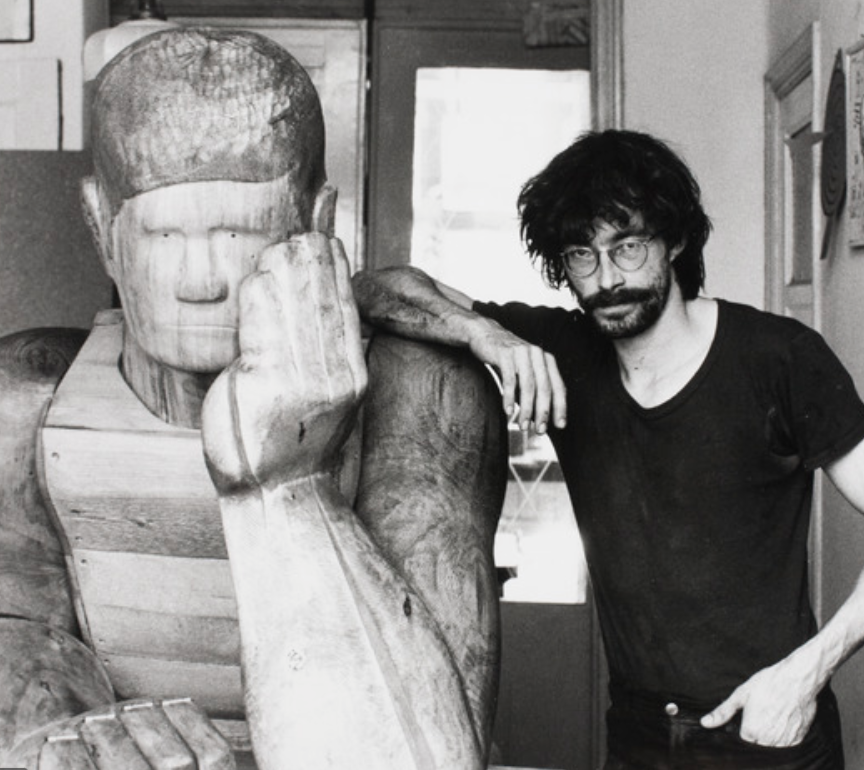 I wrote several blogs on Helena van der Kraan her photography, but never mentioned i had my first meeting with the both of them as artists. It was at the time they made huge wooden sculptures that did move. One of these, with a giant bass fiddle was acquired by the Haags Gemeentemuseum and one was placed for a very long time at an office building at the Kortenaerkade in The Hague. The last one was special and frightened many a passer by. Every quarter of an hour he turned his wrist and looked at his watch, scaring the people who happened to pass at just that moment, Now i ahve added to my inventory 2 books on Axel en Helena and….. i want to share a special movie in which Kees Broos (curartor at the Haags Gemeentemuseum) made a video on Axel and Helena, featuring….Gerard Verdijk.