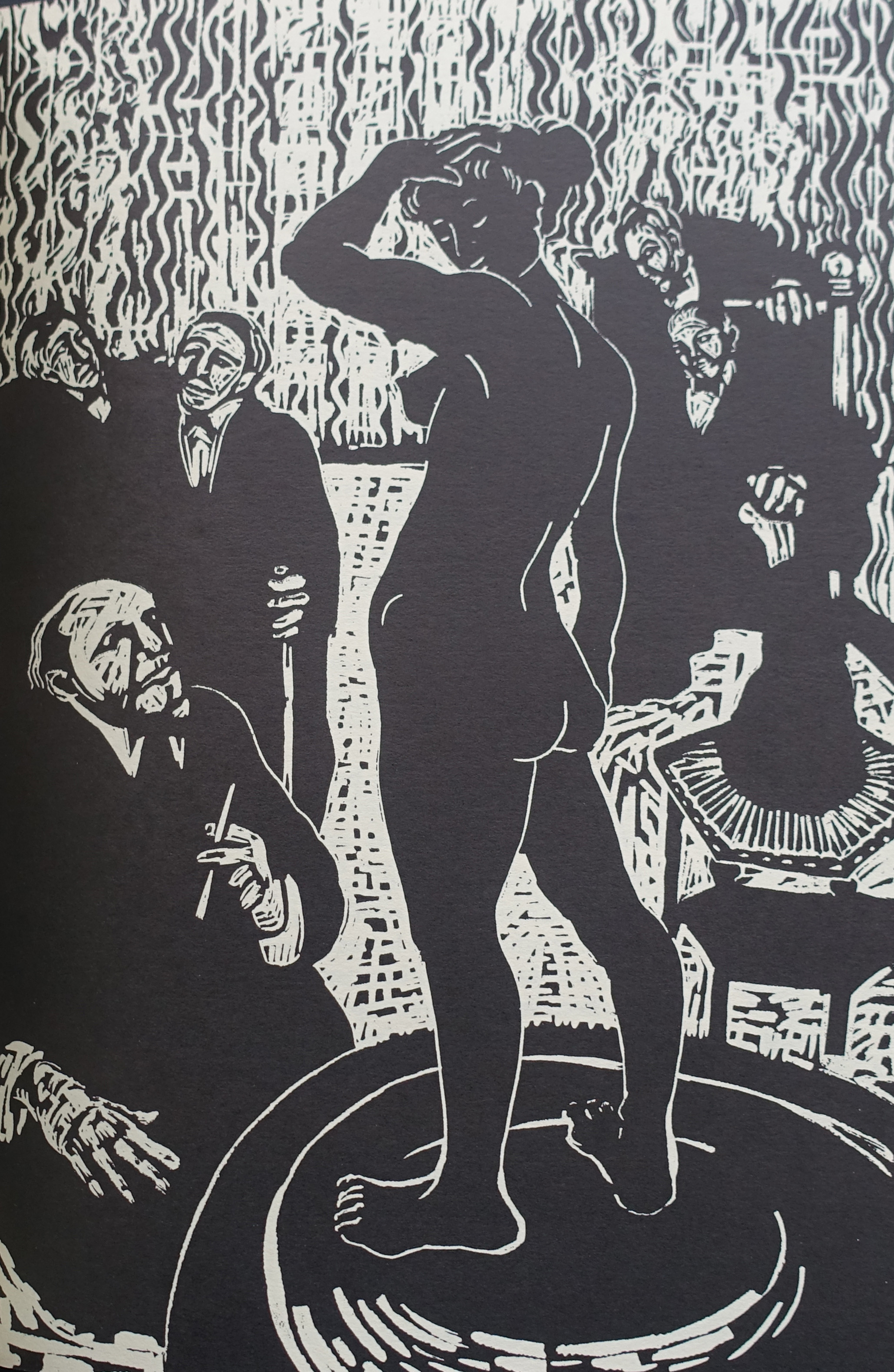 Last visit i encountered this very nice artist book . The books contains 9 great original lino cuts and the artist was not known to me, but the quality of the design and lino cuts made me buy the book. I am impressed….a beautiful publication with an excellent design by Dennis Hall. Story is grate but the linocuts are the main attraction of this publication.
