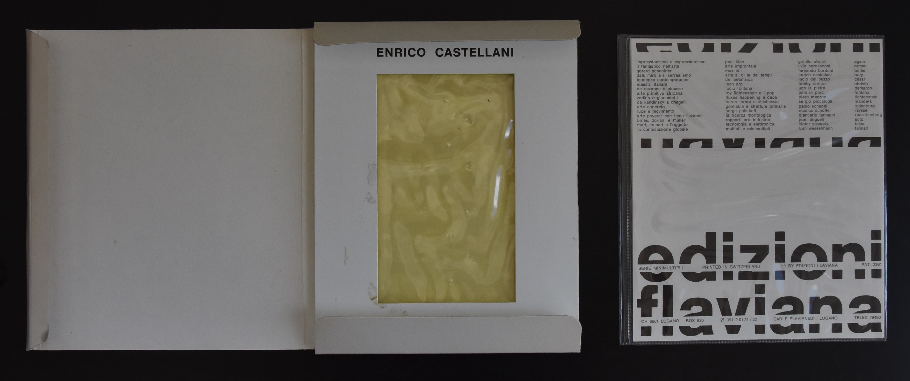 Yesterday, the first of my new acquisitions was discussed in my blog. Today the second one will be presented to my readers. This one is another one from the 1967 publications by Edizioni Flaviana within their series of Minimultipli. Title …..Campo Tissurale….Condition of this one too is excellent and another one well worth collecting now, because these beautiful publications are getting more scarce every month and i believe to be the only seller on the internet who is offering 2 of these rare publications. Ugo La Pietra is still active as an artist and designer, but none of his work is considered more important than his sixties work in which he showed his admiration and close relationship to other ZERO / NUL artists. This exquisite small publication shows why and is available at www.ftn-books.com