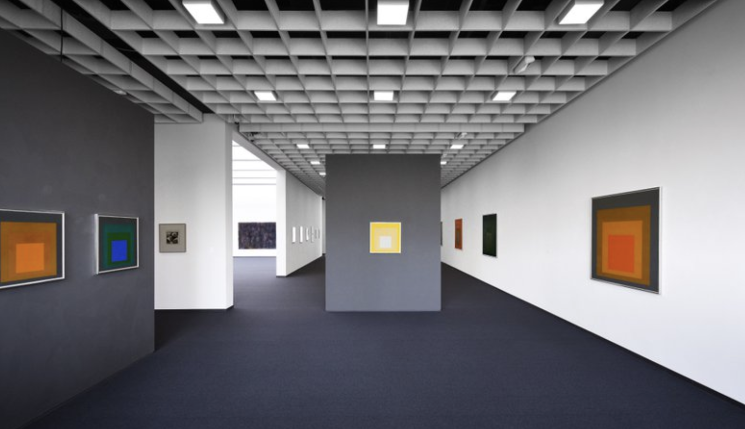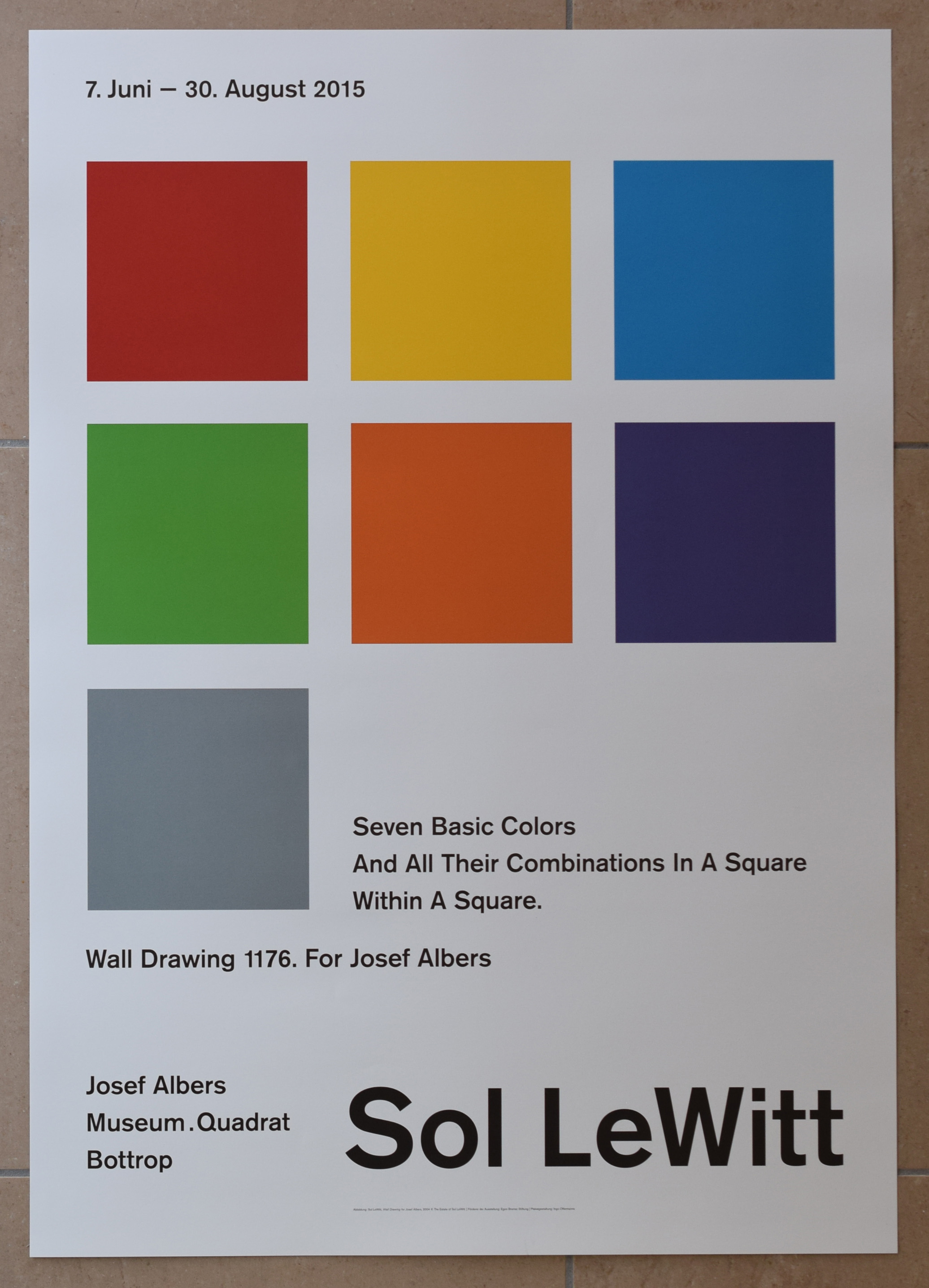 It must have been in december some eight years ago that me, my wife and Ellis my sister in law decided to make a small detour to Bottrop after vsiting the Alsace region. When we arrived there were were impressed by the surroundings of the museum. a park and a sculpture garden next door to the museum building itself. Of coursse we came over there to see the Josef Albers paintings, but after the visit we started to see what wonderful items the bookshop was selling. Among them….posters, special prints and Josef Albers furniture.