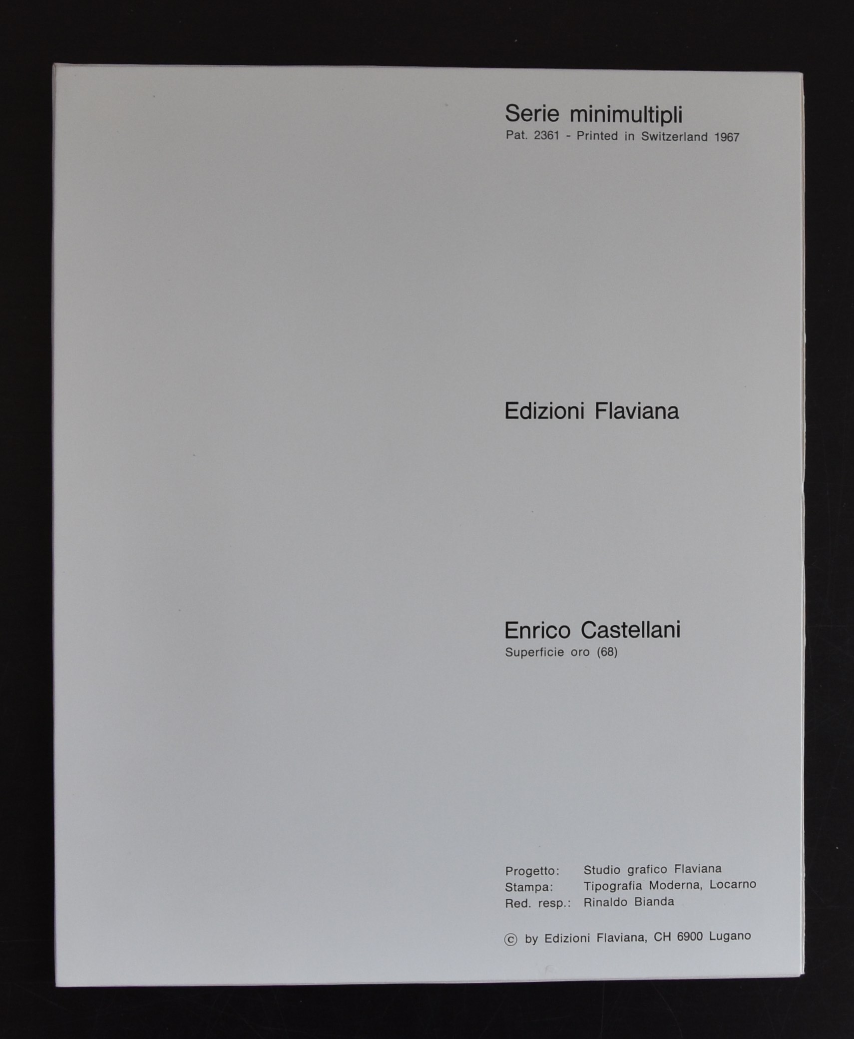 Yesterday, the first of my new acquisitions was discussed in my blog. Today the second one will be presented to my readers. This one is another one from the 1967 publications by Edizioni Flaviana within their series of Minimultipli. Title …..Campo Tissurale….Condition of this one too is excellent and another one well worth collecting now, because these beautiful publications are getting more scarce every month and i believe to be the only seller on the internet who is offering 2 of these rare publications. Ugo La Pietra is still active as an artist and designer, but none of his work is considered more important than his sixties work in which he showed his admiration and close relationship to other ZERO / NUL artists. This exquisite small publication shows why and is available at www.ftn-books.com